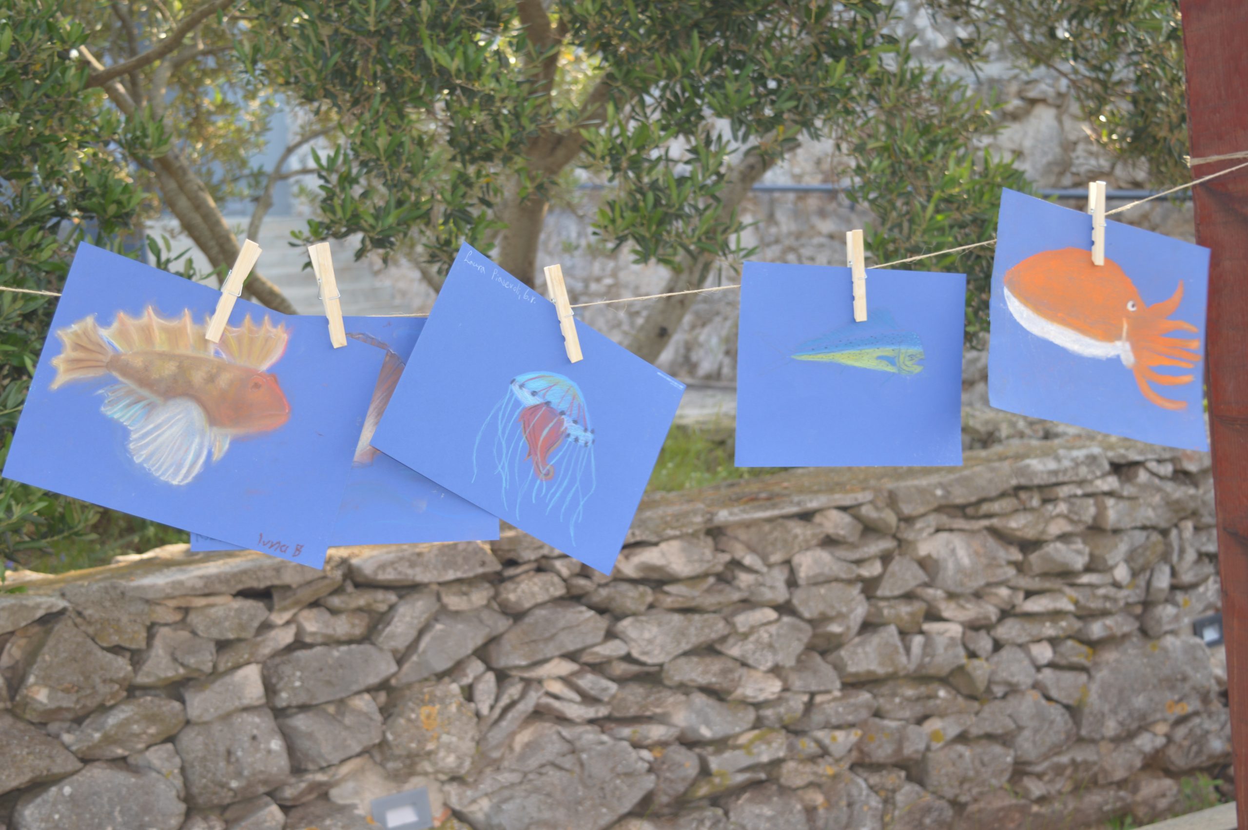 -Postavili smo fotografije snimljene podvodnom kamerom, crteže, zanimljive radove. More je život! More je obilje! Tu su se našle i ribice od stakla koje je sakupljeno na obali Karme, zatim sipa isprintana 3D tehnikom. Na tiramolu između stabala štipalicama je pričvršćena roba napravljena i dizajnirana od stare odjeće, nadopunjena plastičnim materijalima. Kolekcija je bila nadahnuta temom opasnosti brze mode za more i osvješćivanju pozitivnih strana recikliranja. Posjetitelje su pozdravili petaši Mikula i Luka i uprizorili intervju ribara s morem. Čuli smo puno zanimljivosti o Mikulinoj najdražoj ribi brancinu. A onda su nas u svijet glazbe odvele šestašice Iva violinom i Matea flautom. Samo more nosim ja u duši još nekoliko pjesama inspiriranih morem otpjevala je učiteljica informatike Anita Nikić uz gitarsku pratnju Josipa Perice- otkriva nam učiteljica prirode i biologije, Barbara Hadeljan, uz potporu OŠ Petar Lorini, Sali i OŠ Krune Krstića, Zadar.