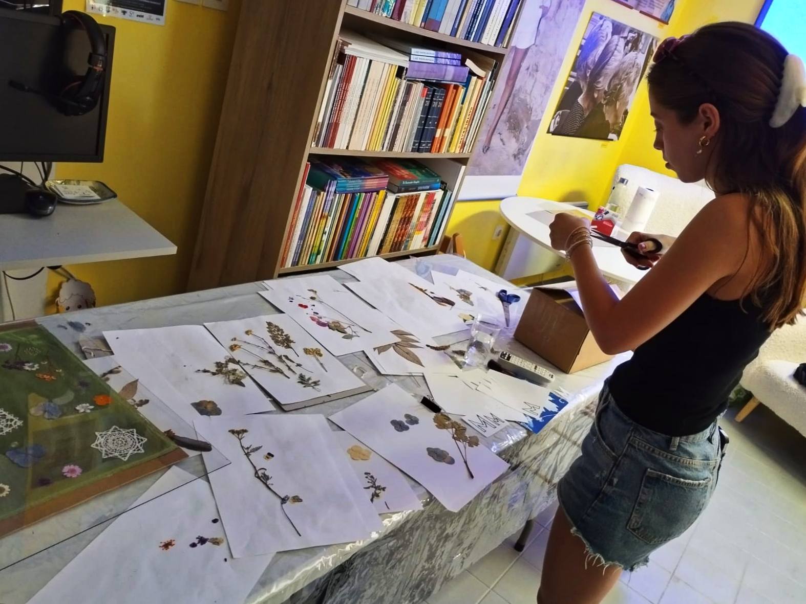 Nakon uvodnog dijela uslijedio je praktični rad koji je polaznicima pružio priliku da se izraze na originalan i zabavan način. Sudjelovala je i draga gošća Jadranka, koja je svojom vedrinom dodatno uljepšala atmosferu. Polaznici su na pripremljene marame slagali razne sušene cvjetiće i čipkaste detalje, pažljivo birajući oblike i motive kojima su željeli ukrasiti svoje platno.