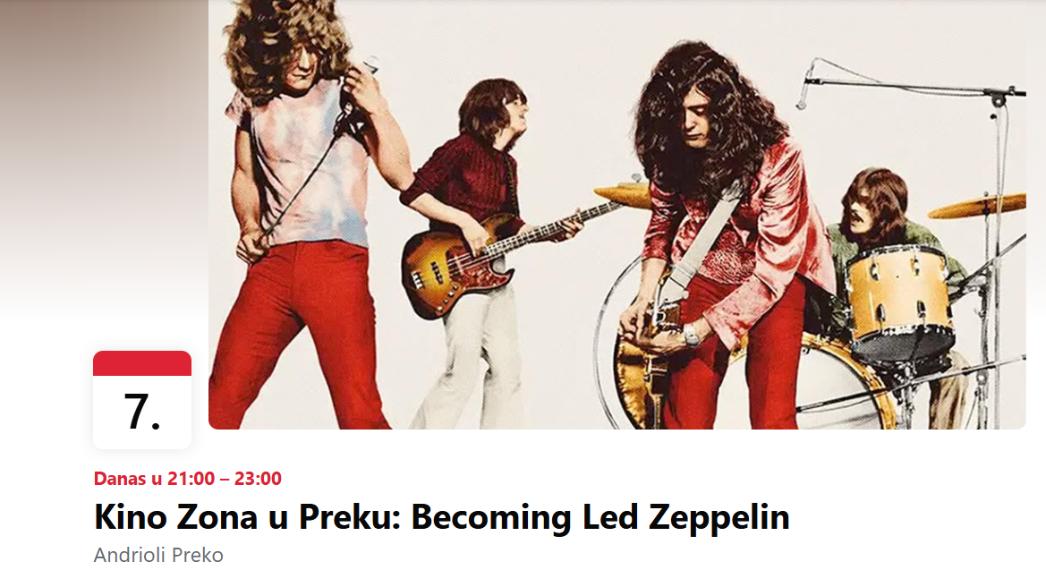 ”Becoming Led Zeppelin” je na rasporedu u ponedjeljak 7. srpnja s početkom od 21 h, u Andrioliju u Preku, Ulica biskupa Josipa Marcelića 6. Ulaz je slobodan!