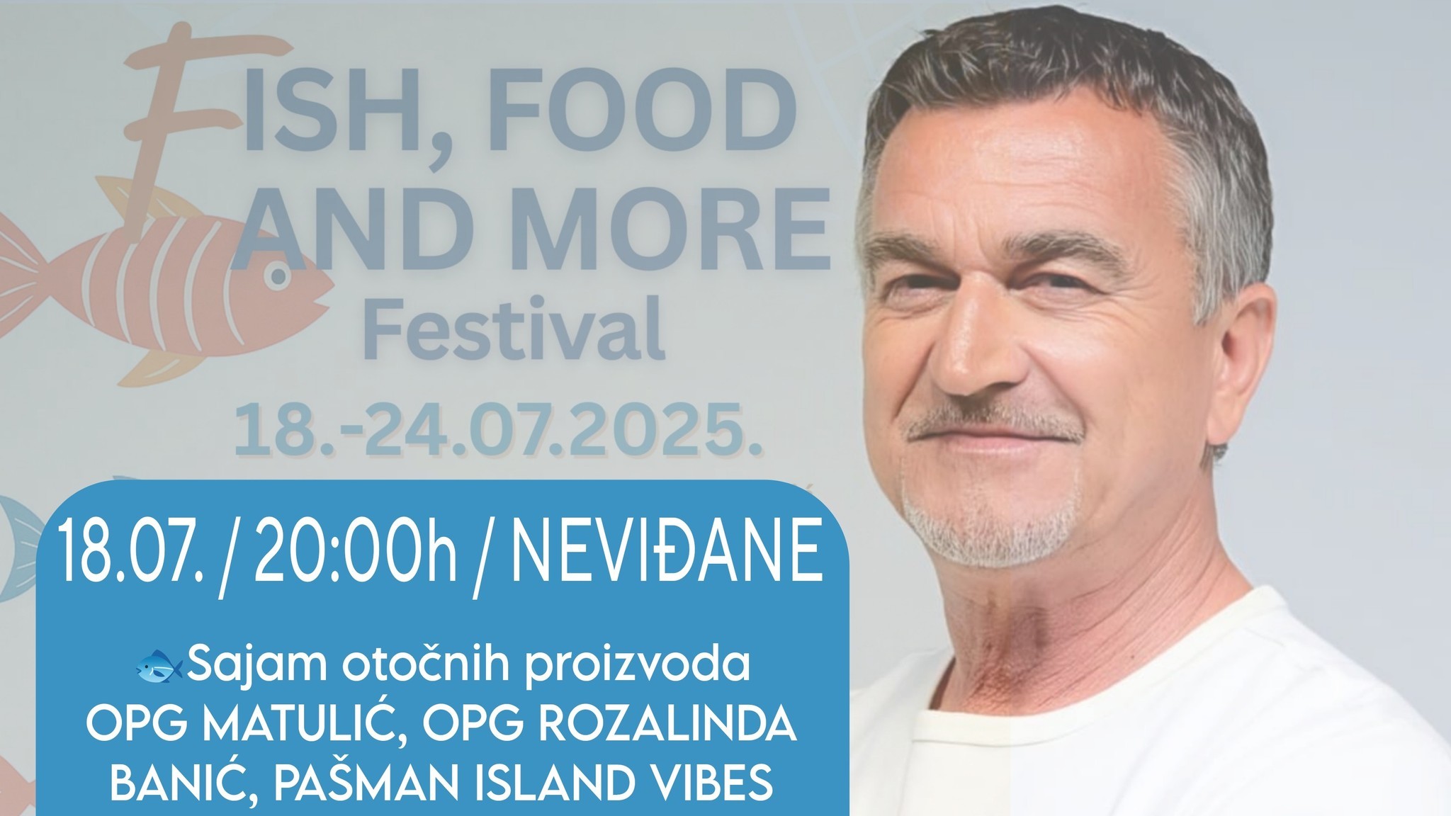 U srcu ljeta, kada dani dostižu vrhunac, a večeri postaju savršene za druženje pod zvijezdama, Neviđane se večeras, 18. srpnja, pretvaraju u središte otočne gastronomije, tradicije i glazbe, s početkom u 20 sati, Fish, Food & More Festival donosi šarmantnu večer na otvorenom, osmišljenu kao slavlje okusa i mirisa otoka Pašmana, ali i kao prilika da se svi posjetitelji prepuste čarima dalmatinskog načina života – opušteno, autentično i s puno duha.