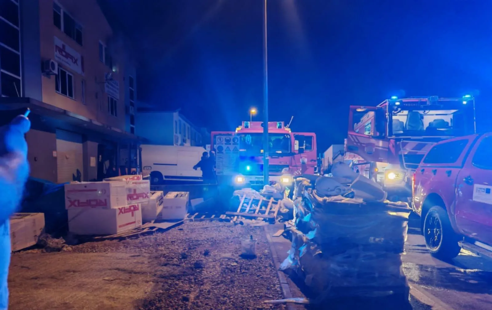 Požar se proširio na građevinski objekt – dvokatnu zgradu, kojom prilikom su izgorjeli skladišni prostori te je nastala veća materijana šteta.