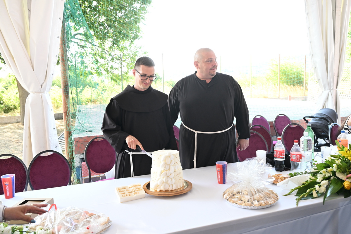 Na kraju predivnog misnog slavlja – izvještava nas Marko Ledenko- Mane – zahvale su izrekli župnik i kum fra Božo Mandarić, Erika Nimac uime župljana, provincijal fra Siniša Balajić te mladomisnik fra Valentino. Drugi dio slavlja uslijedio je u velikom šatoru na školskom igralištu gdje je glazbenim dijelom animirao bend duhovne glazbe “Vires Amoris” iz Metkovića uz nastupe KUD-a sv. Nikole Tavelića – Lišane Ostrovičke, diplare Milu Nimca, bogoslova fra Silvia Romca i Antu Režića i žensku klapu Dalmatika – Zadar.