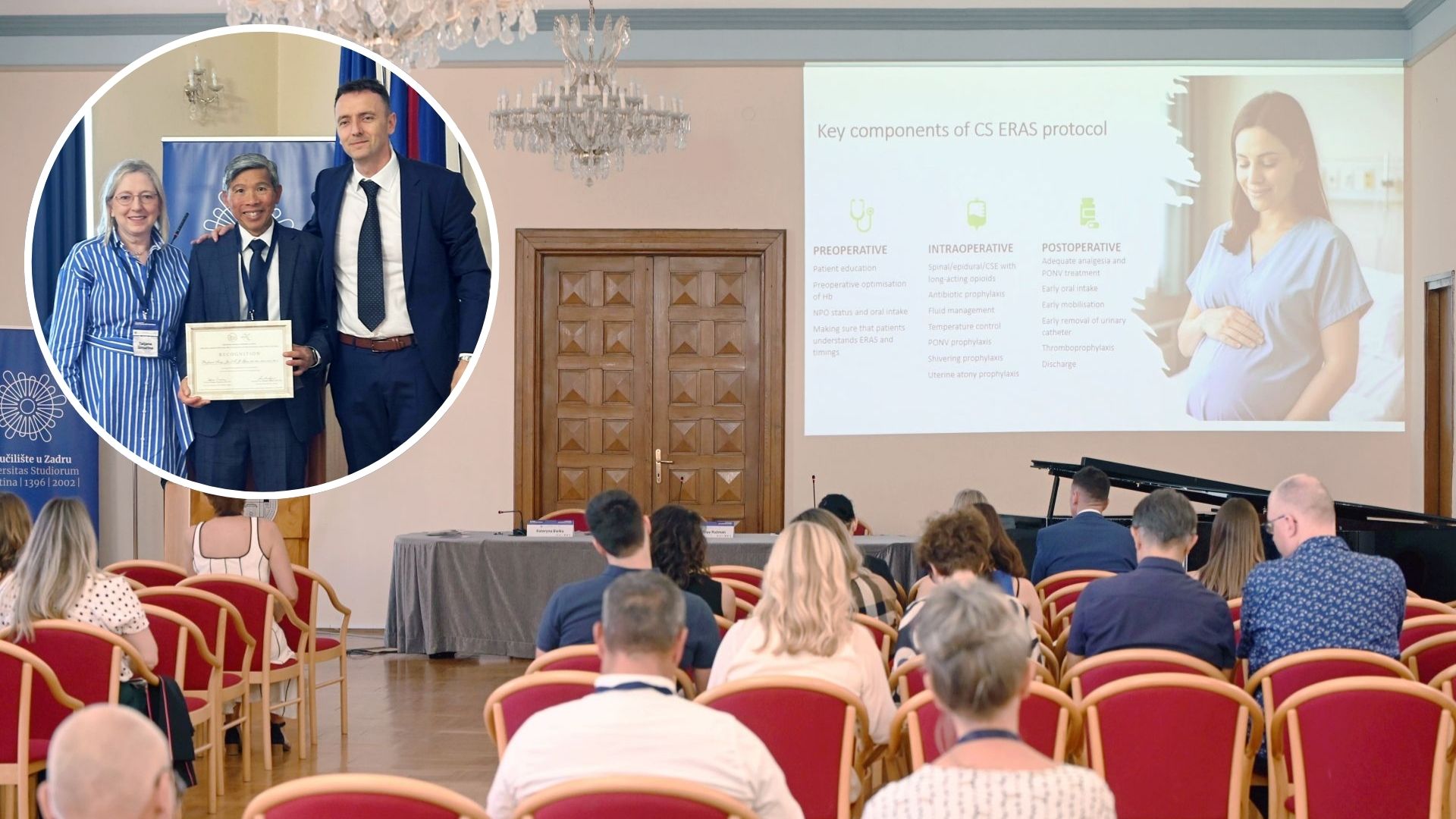 Sudionike je svojim dolaskom počastio svjetski poznati znanstvenik, anesteziolog prof. dr. sc. Tong Joo Gan iz Houstona, sa Sveučilišta u Teksasu, što je priznanje hrvatskoj anesteziologiji i poticaj mladim kolegama da uče od najboljih. Konferencija je bila prilika da se prof. dr. sc. Ganu i prof. dr. sc. Paulu Kessleru s Goethe Sveučilišta iz Frankfurta uruče posebna priznanja za doprinos anesteziološkoj struci. Priznanja im je uručio doc. dr. sc. Miroslav Župčić u ime Hrvatskog društva za ultrazvukom vođenu regionalnu anesteziju Hrvatskog liječničkog zbora. Docent Župčić je također uručio posebnu zahvalnicu domaćinu Sveučilištu u Zadru, koju je preuzela prorektorica prof. dr. sc. Anita Pavić Pintarić.