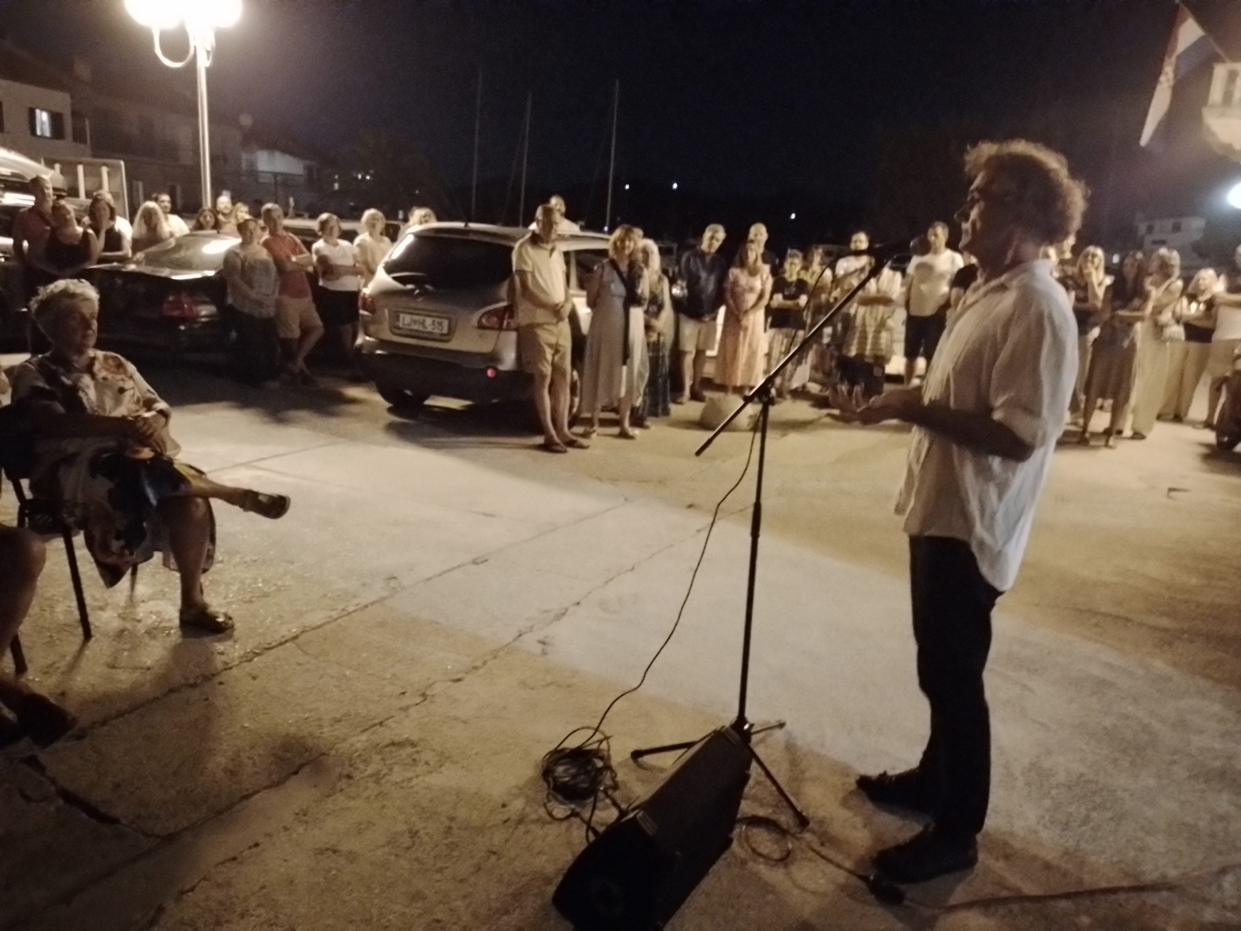 Drugi program pripao je Maloižaninu Silvu Panoviću i predstavljanju njegove druge knjige, “dvoromana” kako je rekao jedan od predstavljača, Rene Medvešek, glumac i redatelj, povremeni stanovnik Iža. Uz njega, o knjizi Panovića, inženjera građevinarstva, pasioniranog fotografa i od nedavno pisca, govorio je Zvonko Sutlović, a glazbom je sve začinio bend Trio Môre. Riječ je o dva kratka romana  –  Ukazanje sv. Josipa radnika i Zločin na otoku, oba radnjom smještena na Iž, otok, kako je rečeno, na kojemu gotovo da nema ni tučnjava, a kamo li ubojstava što ih u duhovitim zavrzlamama danima rješavaju policajci i detektivi.