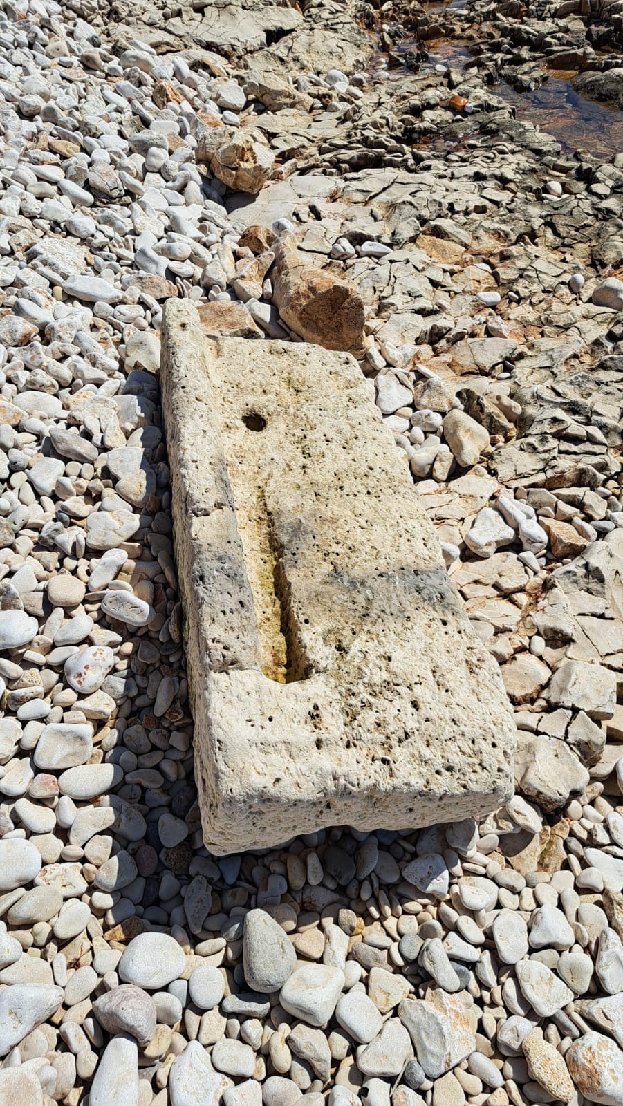 Sarkofag se nalazi na sekundarnoj poziciji na koju je premješten tijekom povijesti kada je i devastiran. Utvrđeno je kako u njemu nema više predmeta, no radi se o iznimnom nalazu. Uz obalu su nađeni dijelovi rimskog praga te kameni dio postrojenja rimske uljare. Dok se položaj sa sarkofagom nalazi ispod kulturnih slojeva te zahtjeva provedbu arheoloških istraživanja, pokretne kamene nalaze na samoj obali potrebno je pohraniti i prezentirati u samom mjestu Unije. Nalazište je dokumentirano što je temelj pokrenute pravne zaštite nalazišta kao kulturnog dobra. Daljnjim aktivnostima plan je prezentirati bogato nasljeđe otoka Unije.