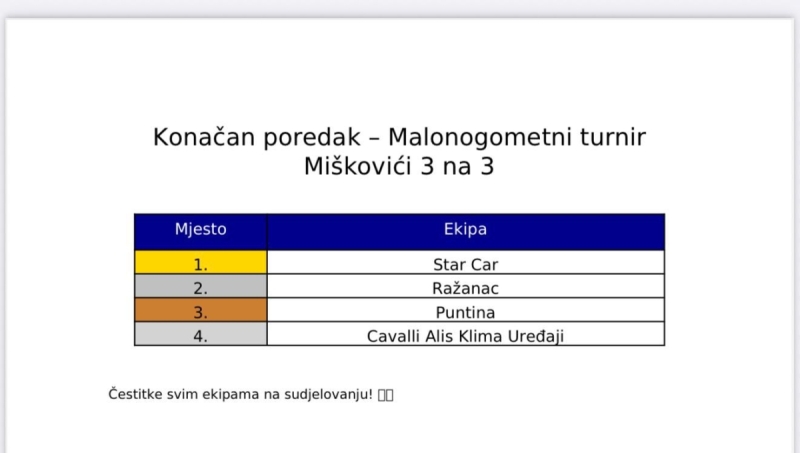 „Ovakvi turniri imaju veliku vrijednost za našu zajednicu jer okupljaju ljude, potiču sportski duh i jačaju zajedništvo. Ponosan sam što Miškovići i ostala mjesta na području našeg grada njeguju tradiciju malog nogometa, a Grad će i dalje podržavati ovakve manifestacije“, istaknuo je gradonačelnik Paga.