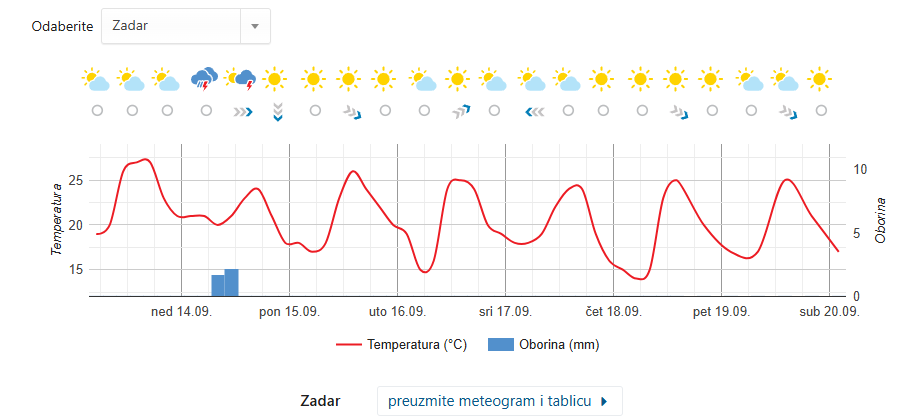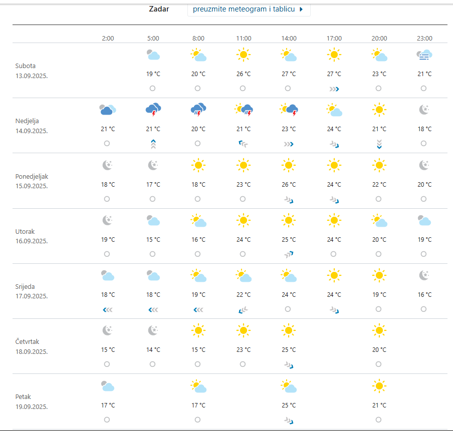 Evo nam ispod teksta konkretna detaljna tjedna meteo prognoza za Zadar… (PL)