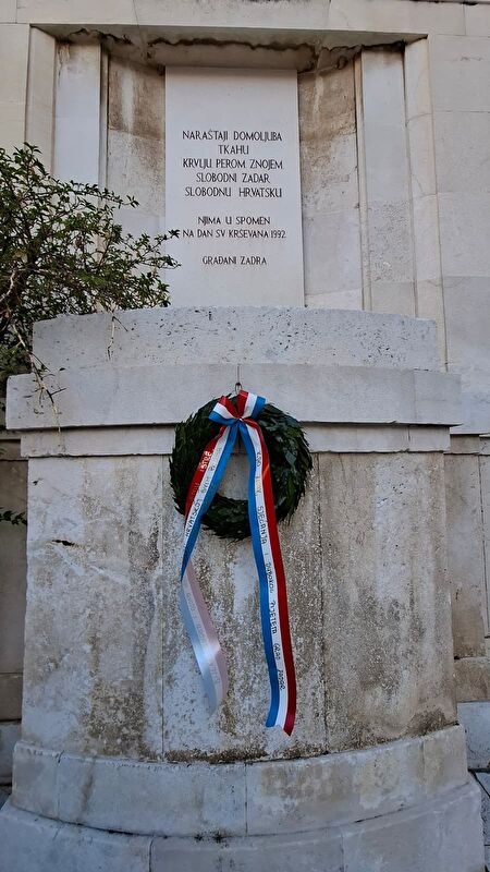 U povodu državnog spomendana 25. rujna, Dana donošenja Odluke o sjedinjenu Istre, Rijeke, Zadra i otoka s maticom zemljom Hrvatskom, značajnog za očuvanje jedinstvenosti hrvatskog teritorija, izaslanstva Grada Zadra i Zadarske županije, predvođena gradonačelnikom Šimom Erlićem i županom Josipom Bilaverom položila su jutros vijenac na Spomen obilježje na Narodnom trgu. Time je odana počast i izražen pijetet svim palima i civilnim žrtvama u borbi protiv fašizma i nacizma, za slobodni Zadar i domovinu Hrvatsku.