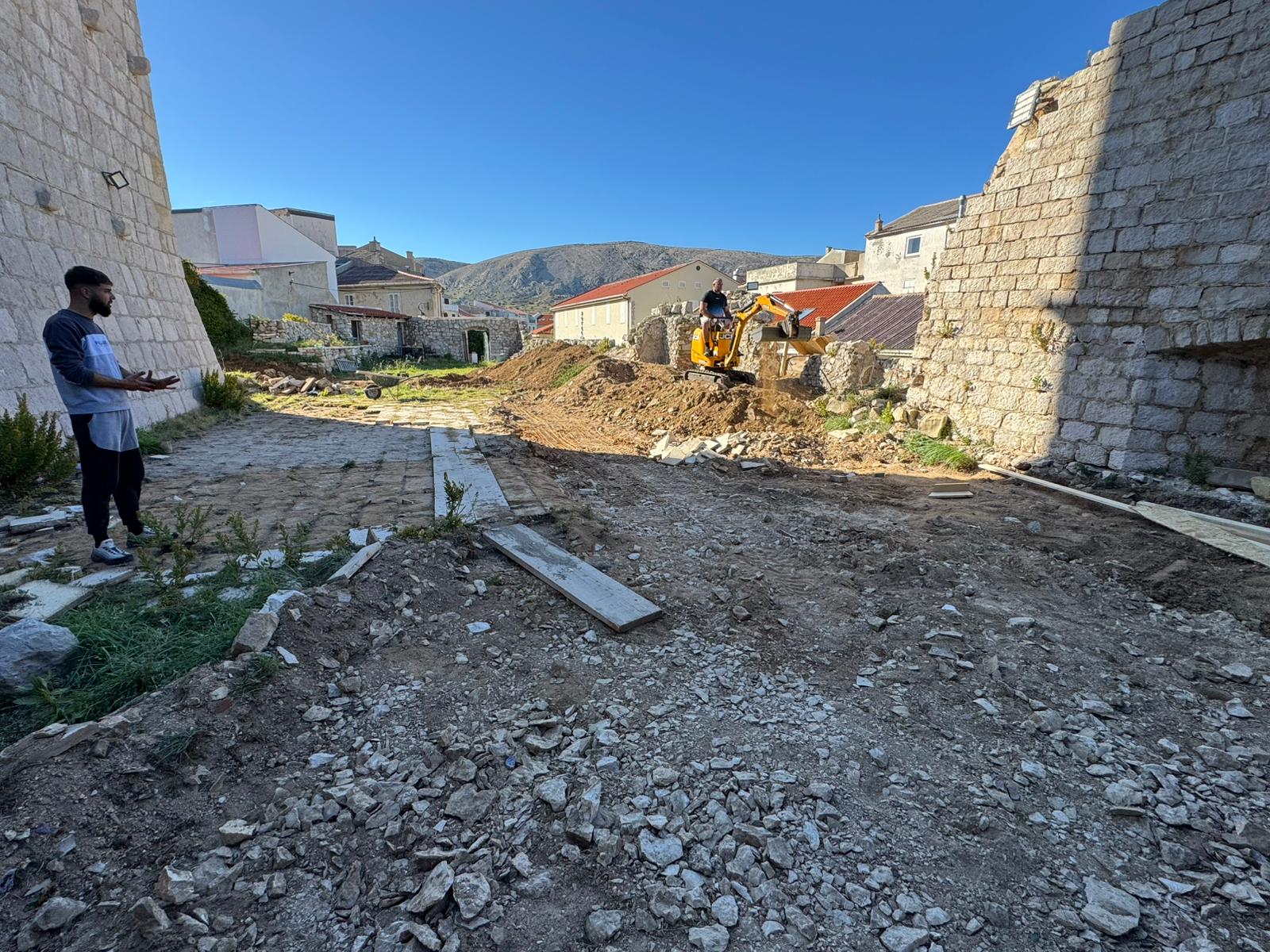 -Tu su tako geodetska izmjera i iskolčenje terena radi preciznog definiranja osi, repera i visinskih točaka objekta, zatim rušenje i razgradnju postojećih dotrajalih i pomoćnih građevina unutar obuhvata, uključujući uklanjanje drvenog krovišta i otvora, uz pažljivo odvajanje i pohranu uporabljivog kamenog materijala za ponovnu ugradnju, onda i ručni i strojni iskopi tla – navode iz Grada.