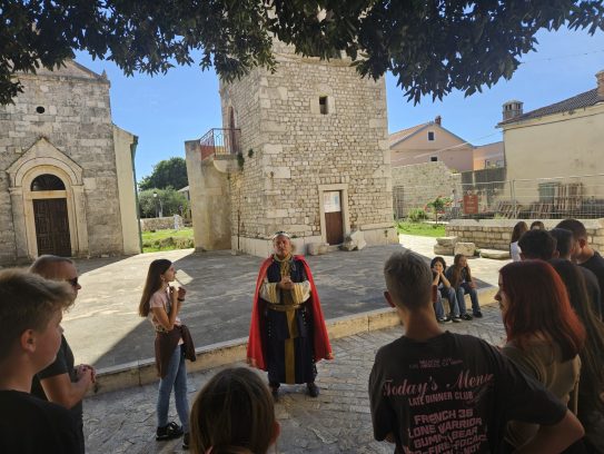 Ovim projektom mladi na inovativan način uče o kulturnoj, povijesnoj i prirodnoj baštini svoga grada. Suradnja ninskih turističkih djelatnika sa Osnovnom školom Petar Zoranić u cilju je edukacije i jačanja znanja kod najmlađih. Niz godina se odvija Program kostimiranih vođenja petkom od lipnja do kolovoza gdje licencirani turistički vodiči u liku pjesnika Petra Zoranića i vila vode za turiste. Ovom prigodom učenike i okupljene turiste te građanstvo vodio je kralj Tomislav (vodič). Ovaj storytelling projekt čin povezan je s obilježavanjem iznimno važnog događaja za cijelu Hrvatsku 1100. obljetnicu Hrvatskog kraljevstva. Za tu prigodu, a osim prigodnih promotivnih materijala, ninska turistička zajednica nabavila je kostim kralja i kraljice za prigodno kostimirano vođenje, te pratećih turističkih događaja poput kraljevske šetnje unutar Romantičnog tjedna. Za narednu godinu planirano je naizmjenično kostimirano vođenje u liku pjesnika Zoranića i vila te u liku kralja Tomislava i kraljice.