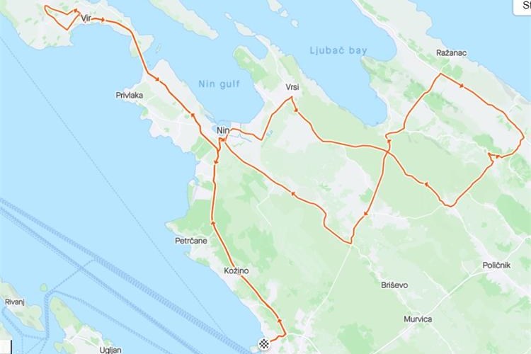 Start utrke je u 10 sati ispred hotela Funimation. Trasa utrke ide Zadar – Kožino – Petrčane – Zaton – Nin – Privlaka – Vir – Nin – Vrsi – Ražanac – Radovin – Mazija – Nin – Kožino – Zadar.