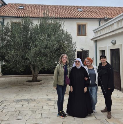 U samostanu ih je dočekala poglavarica, časna Benedikta, koja ih je provela kroz Stalnu izložbu sakralne umjetnosti i upoznala s višestoljetnom tradicijom paškog čipkarstva – dragocjenim simbolom identiteta grada. U parlatoriju ih je časna Placida uvela u tajne izrade čipke, prikazujući tradicionalne tehnike šivanja koje su se prenosile s koljena na koljeno. Gosti su s oduševljenjem promatrali finu mrežu niti, a zatim se i sami okušali u stvaranju digitalne čipke, što ih je posebno dojmilo…
