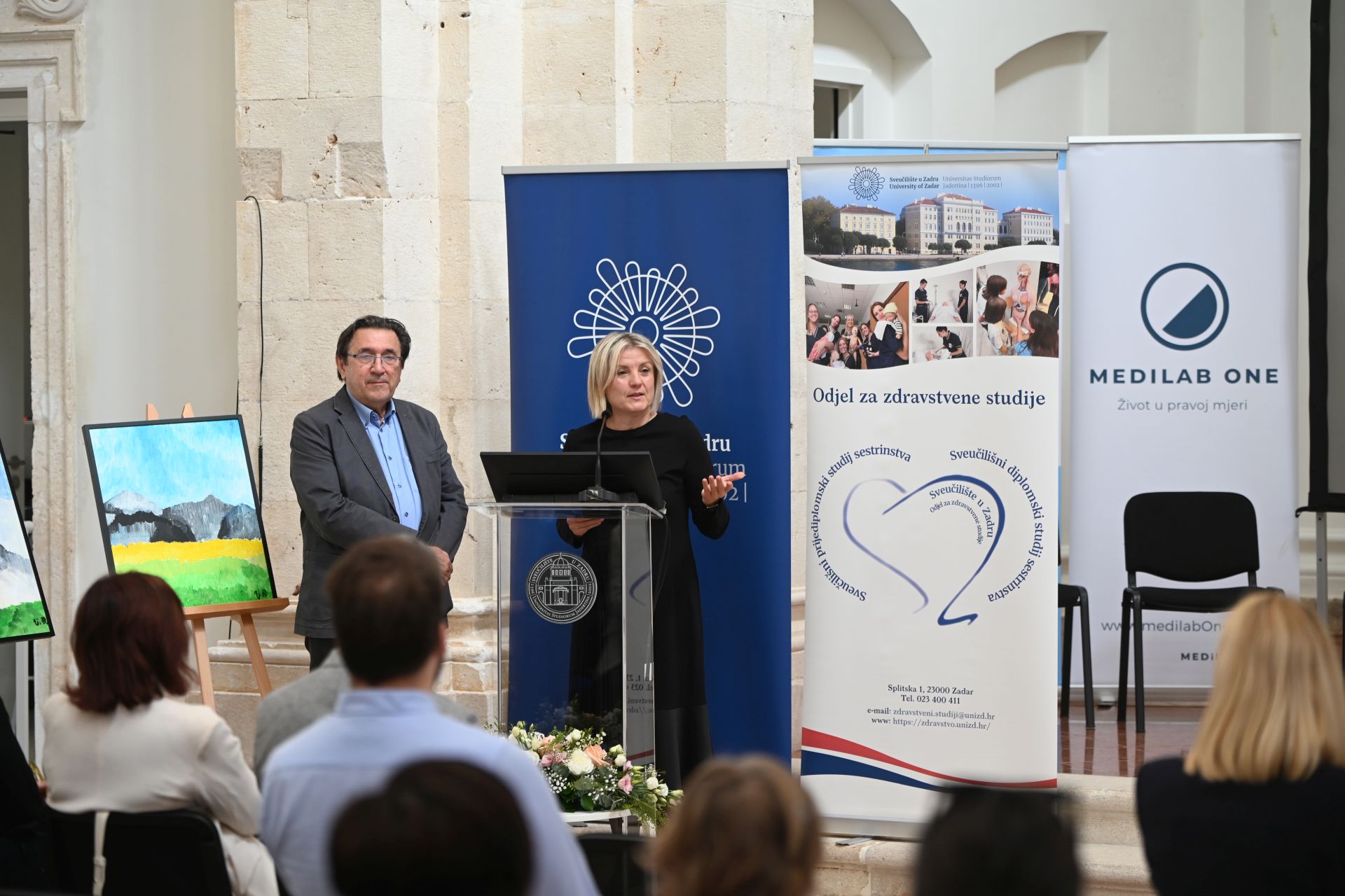 Pozdravne riječi uputili su brojni uzvanici, među kojima predsjednica Europskog instituta za medicinu usmjerenu prema osobi prof. dr. sc. Marijana Braš, voditelj Edukacijskog centra prof. dr. sc. Veljko Đorđević, zamjenica voditelja doc. dr. sc. Klaudia Duka Glavor, predstavnica Ministarstva hrvatskih branitelja Zlatkica Marinković Danilović, don Valter Kotlar iz Povjerenstva za bolnički pastoral i osobe starije životne dobi Zadarske nadbiskupije i drugi.