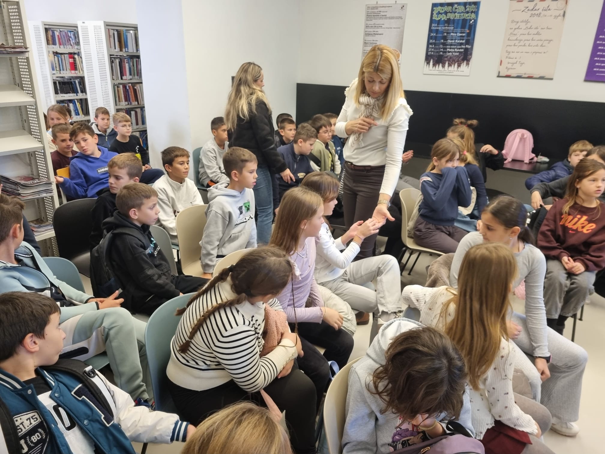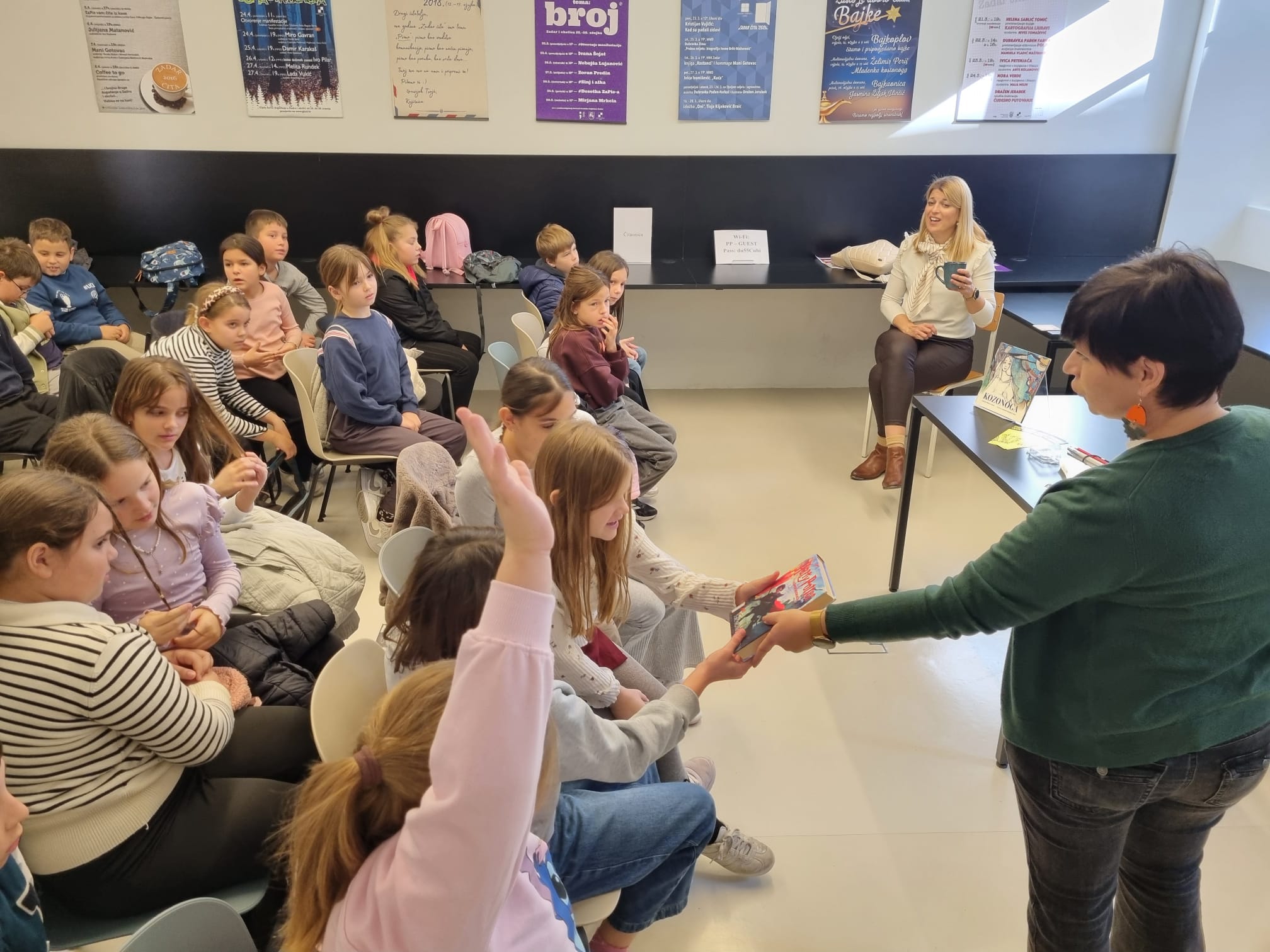 U književnom susretu sudjelovali su učenici 3. a i 3. e razreda Osnovne škole Šimuna Kožičića Benje, koji su s velikim zanimanjem pratili razgovor s autoricom, čitali ulomke iz slikovnice i postavljali pitanja o nastanku priče, likovima i stvaralačkom procesu. Djeca su aktivno sudjelovala u razgovoru, a njihova je znatiželja i kreativnost dodatno obogatila ovaj susret, pretvorivši ga u interaktivno iskustvo učenja i druženja.
