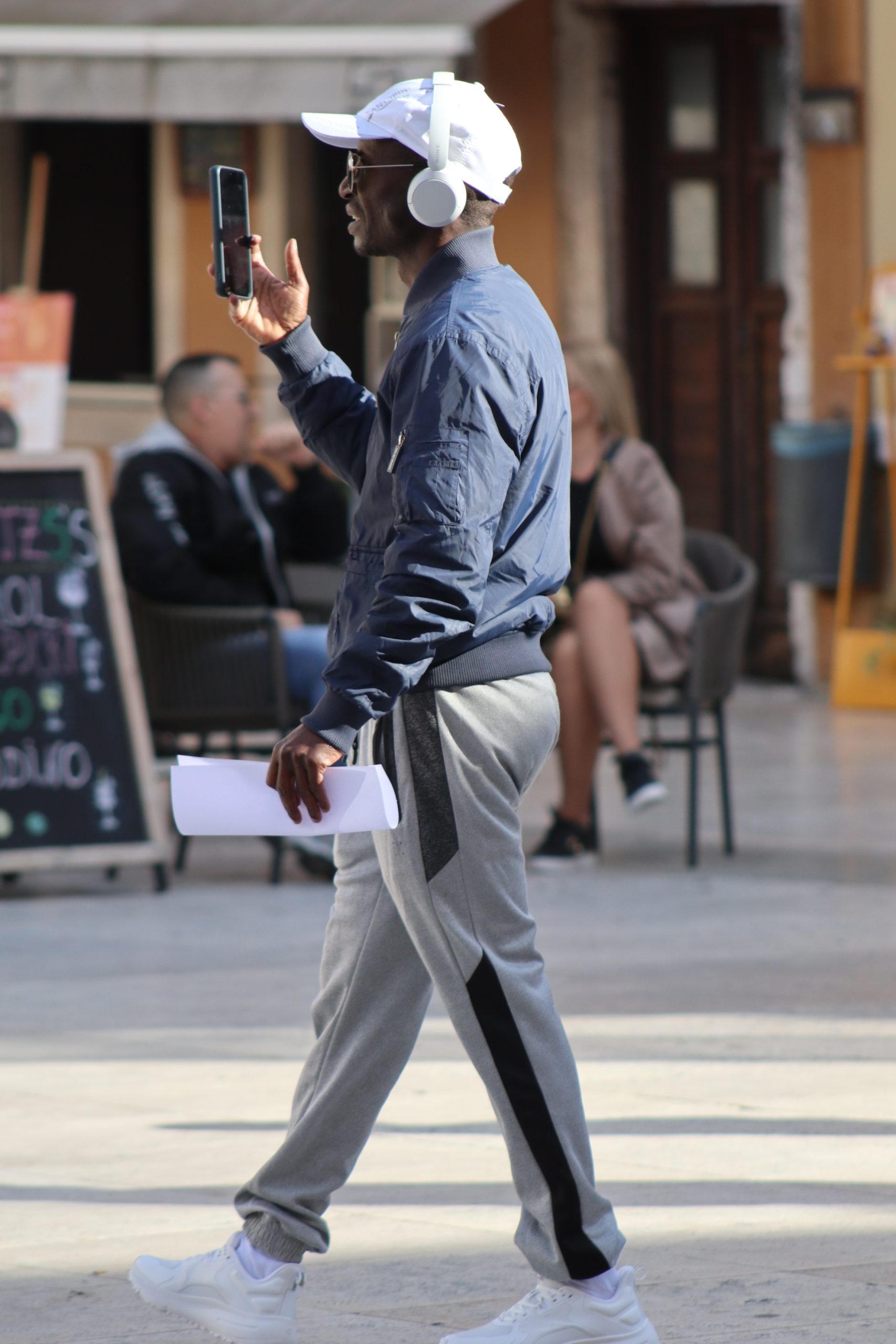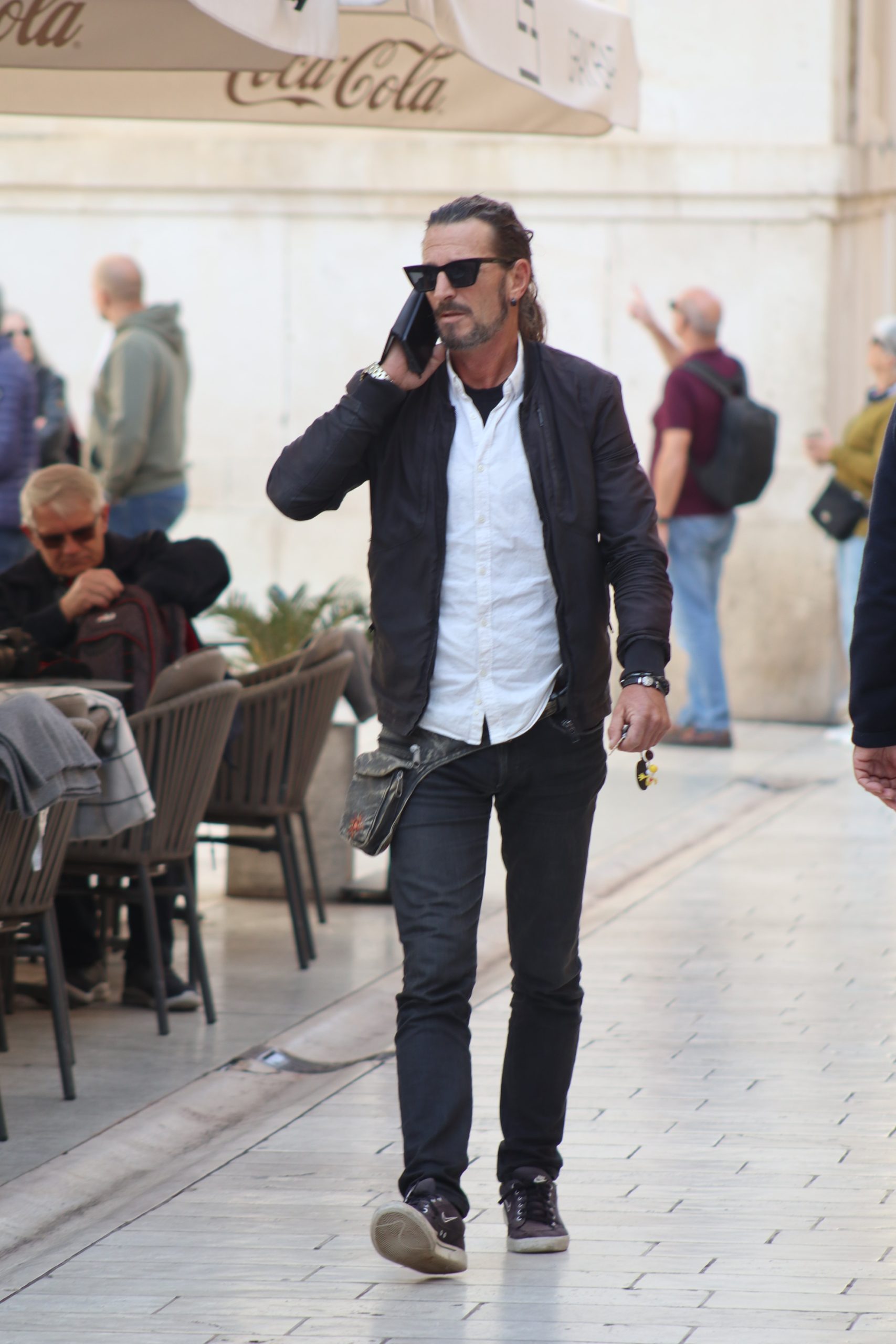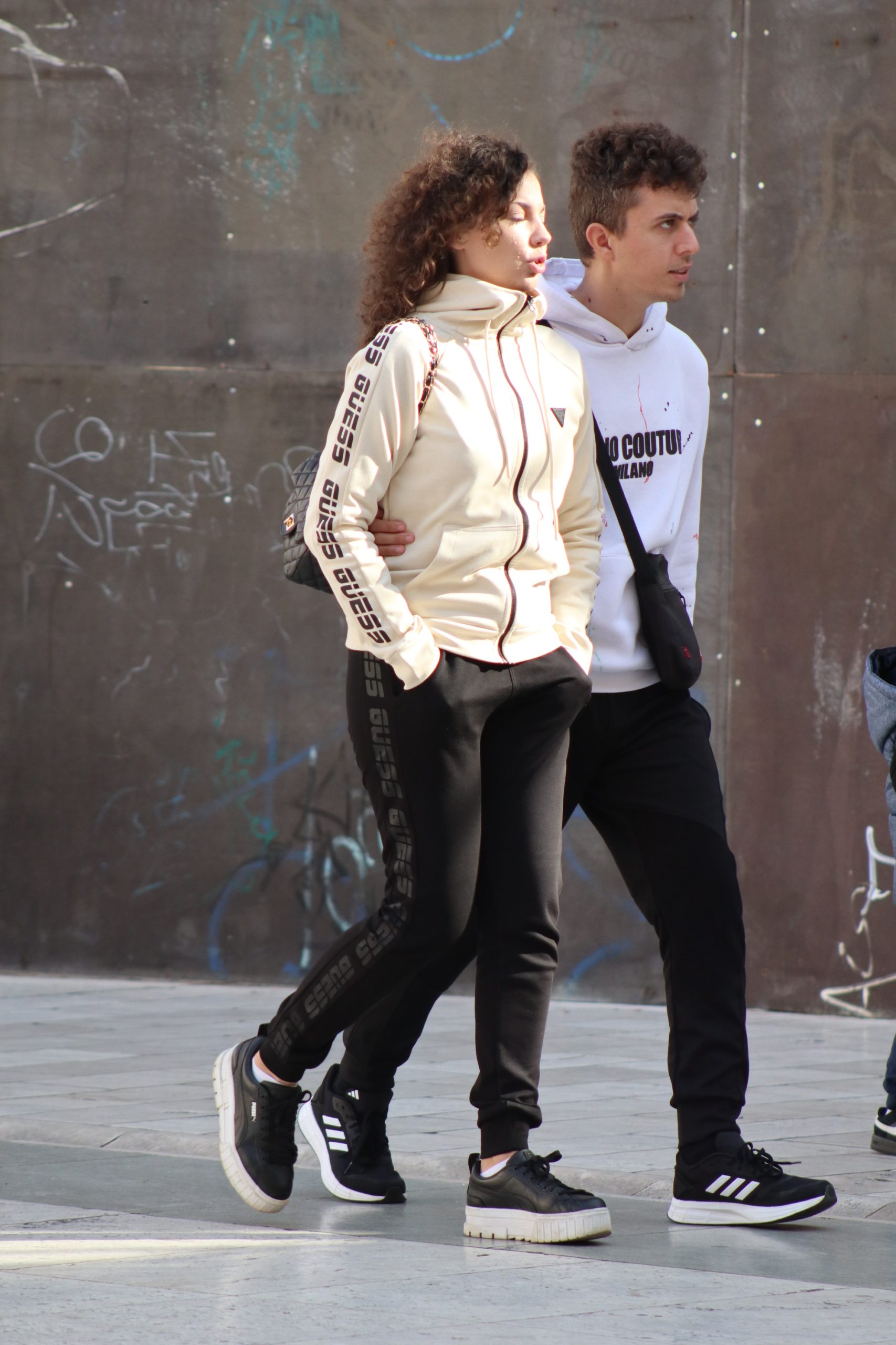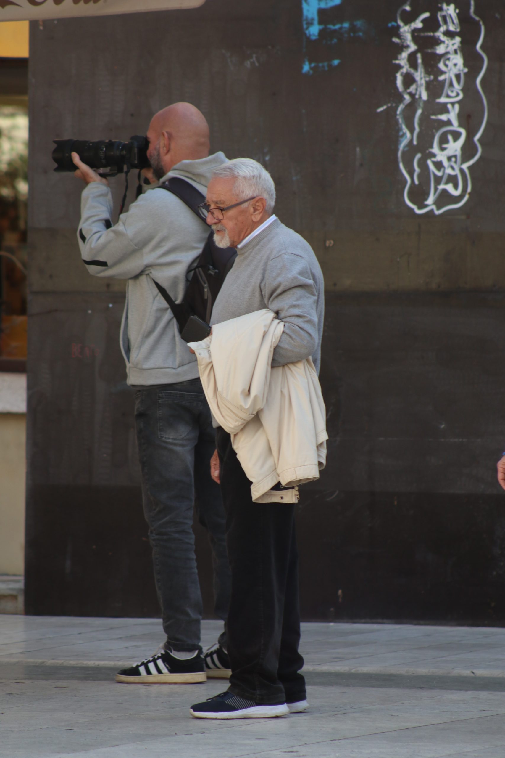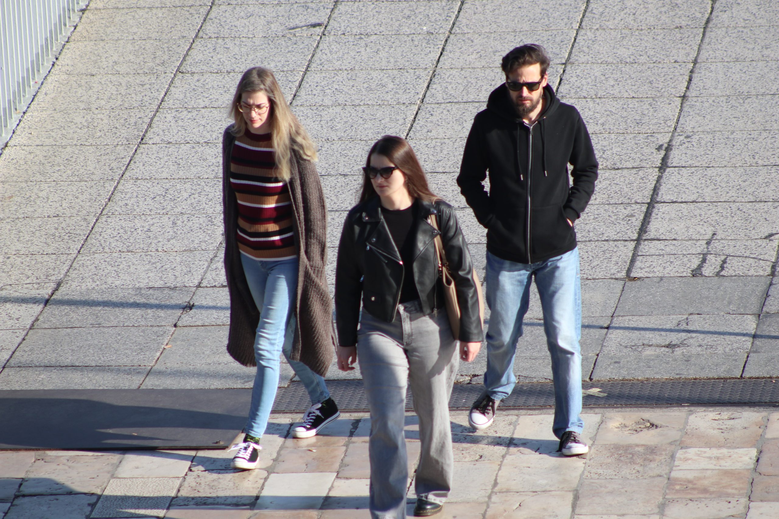Njih tri kao da su ispale iz naslovnice glazbenog albuma – možda Beatlsi, možda samo trio koji zna što znači imati stila. Njihove siluete prolaze pokraj starog zida, a Sitnica ih hvata u trenutku koji izgleda kao kadriran san. Par koraka dalje, momak koji sa slušalicama na uhu izgleda kao iz reklame za Coca-Colu, naslanja se na zid, smiješi se nekoj curi koja to možda nije ni primijetila, a možda i jest – samo ne želi pokazati, scena iz nekog filma.
