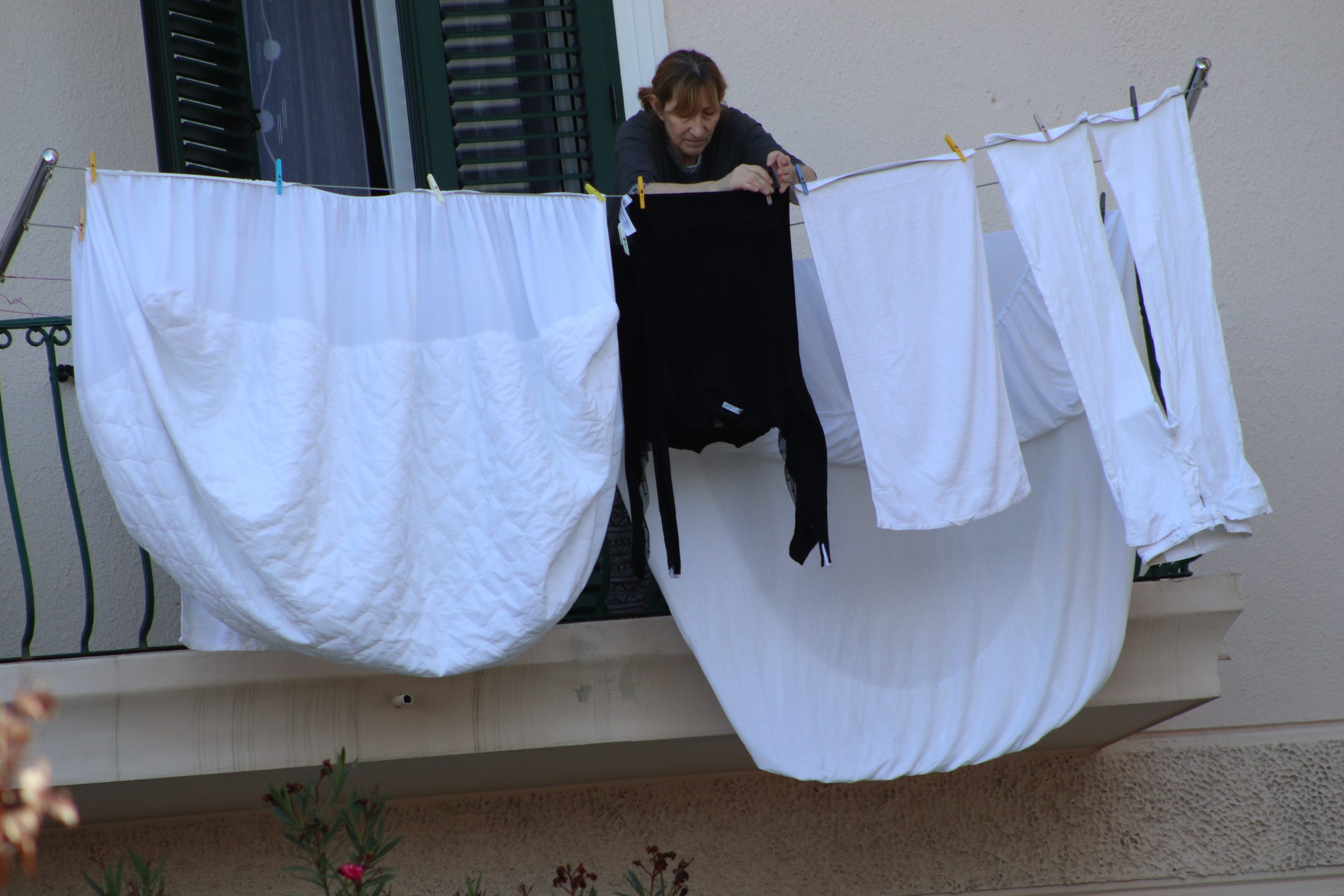 Na jednom prozoru – otvorena ponistra, suši se roba, a netko promatra prizor odozgo, kao kazališni gledatelj i redatelj koji ne želi propustiti ni jedan čin ove predstave života. Djeca u kolicima vrpolje se dok roditelji pokušavaju popiti gutljaj kave prije nego što krene novi val plača. Ulični svirač s gitarom, kao iz filma o Mediteranu, prebire po žicama neku staru melodiju koja podsjeća da je rima ovdje kao i klima – lijepa, blaga, mirisna i topla.
