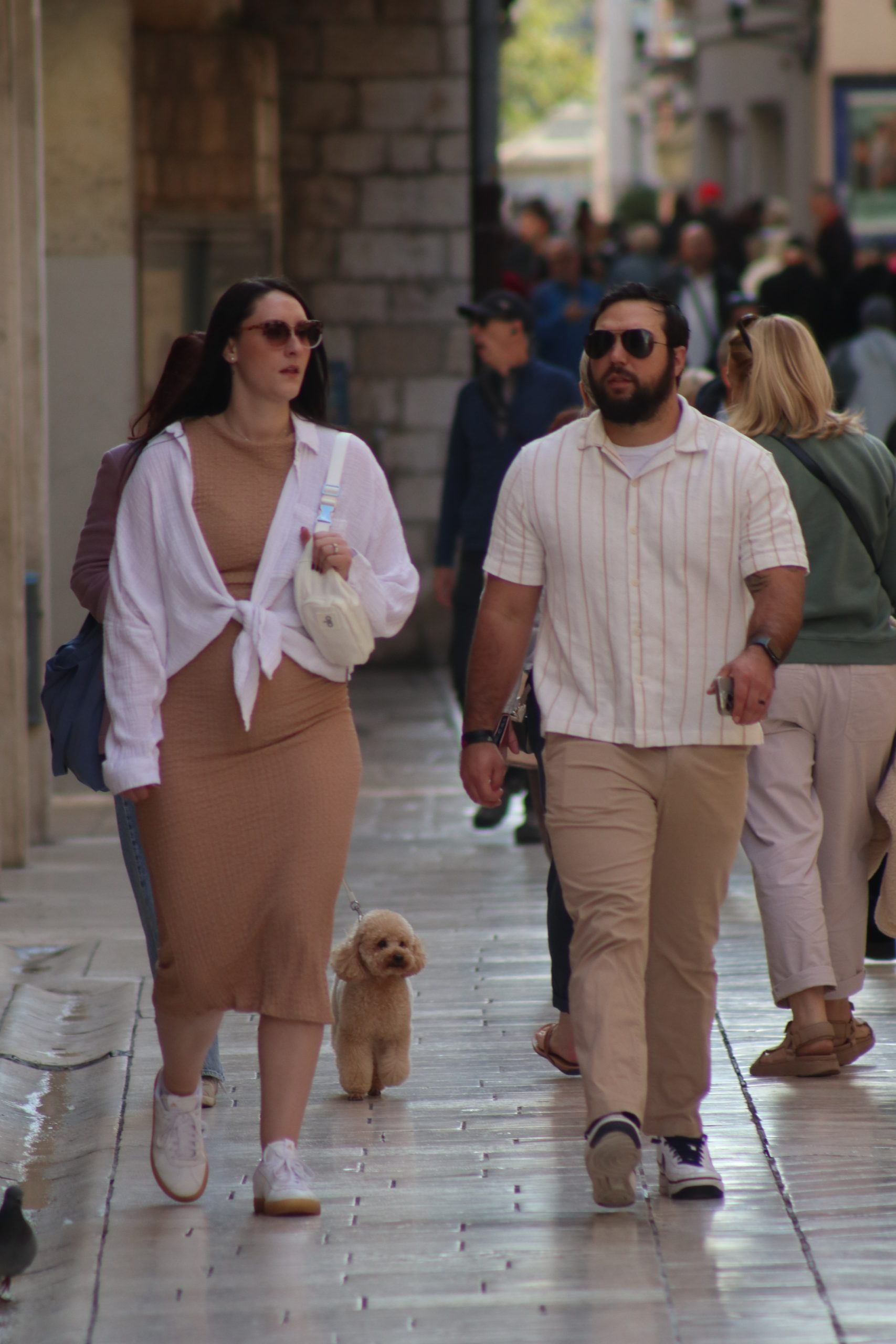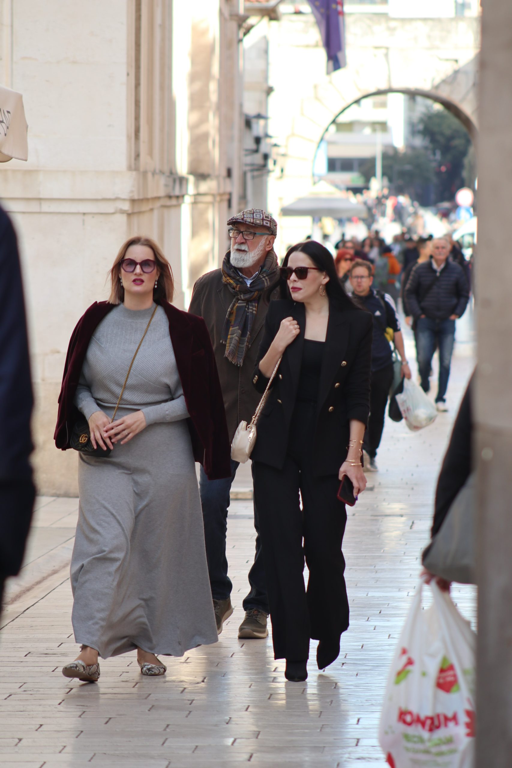Zadranke i Zadrani svih generacija, od baka koje su jutros navukle vunene veste i polako nogu uz nogu s osmijehom komentirale kako je ‘opet zapuvalo s burina i Velebita’, do mladih koji su se za špicu uredili kao da su na modnoj pisti, svi su se slili na svoja mjesta – na most, Forum, Kalelargu, Trg, Tri i Pet bunara. Uz njih su koračali psi i psići, na povodcu, u džepu jakne, u naručju, svaki s istom misijom – prošetati, vidjeti, biti viđen kao standard.