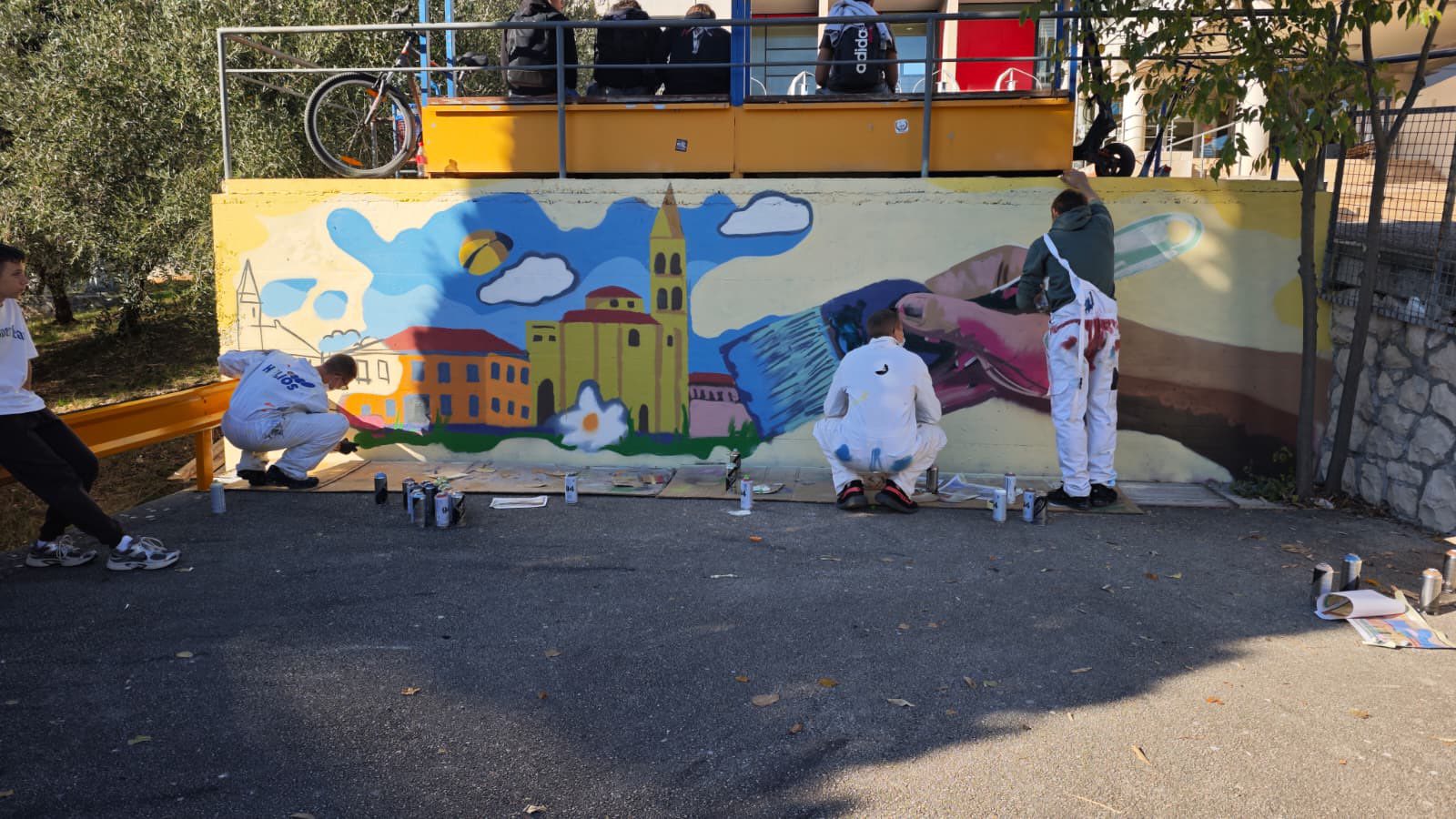 Pod vedrim zadarskim nebom, od jutarnjih sati do poslijepodneva, ispred škole je vladala atmosfera stvaranja, druženja i uzbuđenja. Mladi umjetnici, naoružani sprejevima, bojama i idejama, pretvorili su zid u živu priču o svijetu kakav žele vidjeti – svijet obojen toplinom, zajedništvom i hrabrošću da se istupi iz sive svakodnevice, kako su najavili svoj rad. Za mnoge učenike i učenice i ovo je bio prvi susret s muralizmom i street artom, a mentorica Segarić pobrinula se da im približi ne samo tehniku, nego i filozofiju ulične umjetnosti – koja poštuje prostor, ljude i poruku koju šalje iz školskog dvorišta.