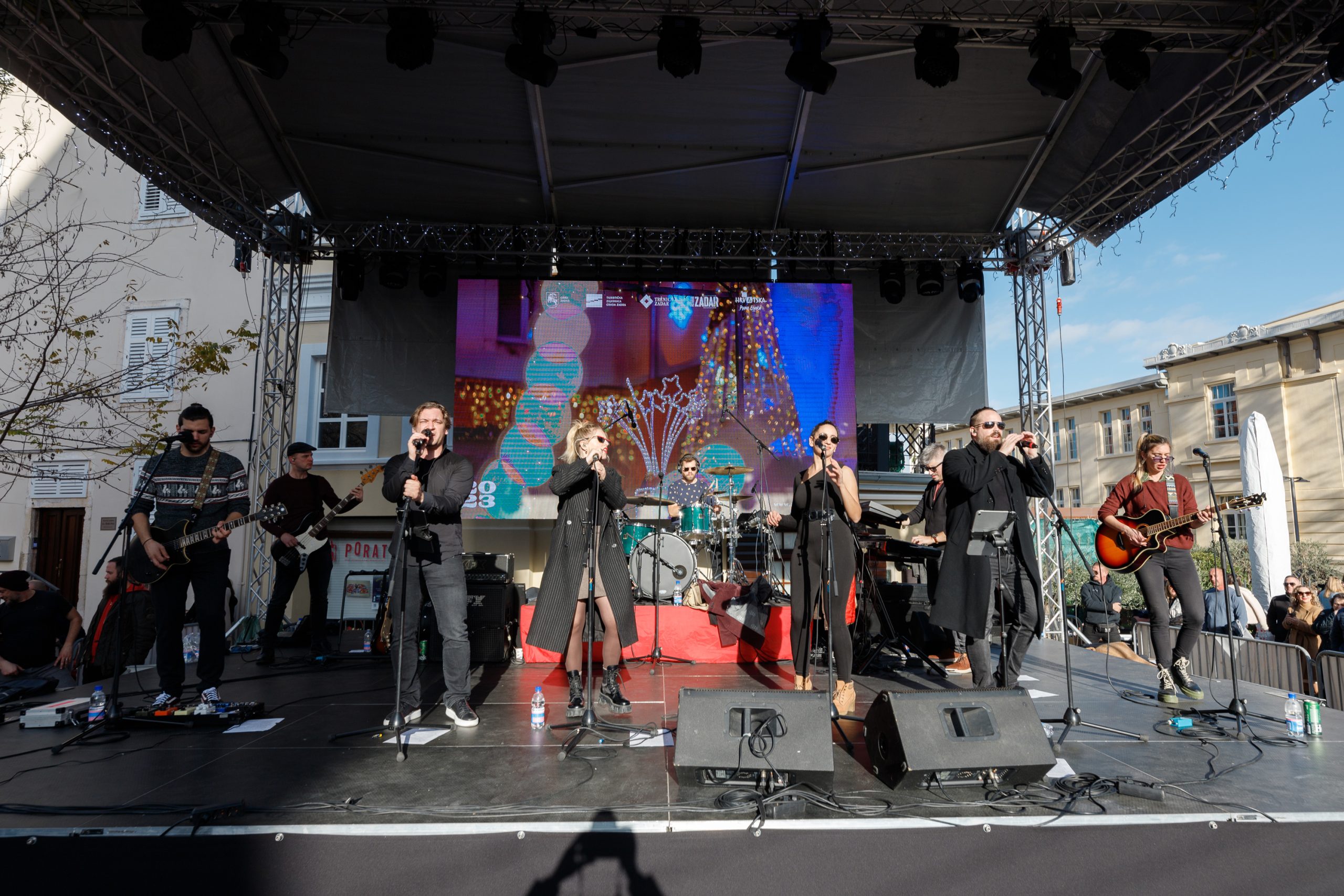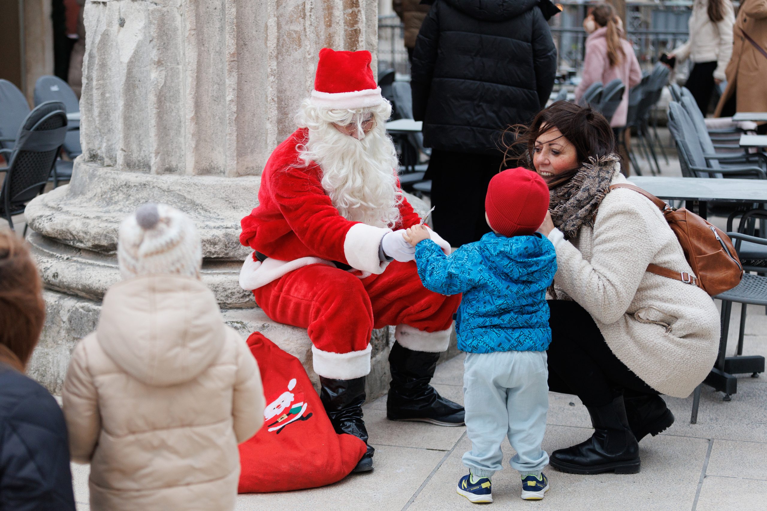 Tako već u 10:30 sati u veseloj promenadi stiže Djed Božićnjak koji će u pratnji kostimiranih animatora prođirati gradom na ruti od Trga pet bunara, Narodnog trga, Kalelarge, Foruma i Rive do povratka na Trg pet bunara. Samo pola sata kasnije, u 11 sati na Trgu Petra Zoranića s adventske pozornice zabavljat će nas mladi pjevači poznati po pojavljivanjima u popularnim HRT-ovim emisijama ”A strana” i ”The Voice”. To su Dora Vestić, Dino Purić, Stjepan Lach i Sabrina Hebiri, a na repertoaru će im biti sve sami klasici domaće zabavne glazbe i pop-rocka: Oliver, Gibonni, Parni valjak, Mate Mišo Kovač, Tony Cetinski, Vanna, Nina Badrić, Zorica Kondža i drugi. Naravno, pjevat će se i strani evergreeni Arethe Franklin, Amy Winehouse, Elvisa Presleyja, The Queen i drugih legendarnih sastava i izvođača.