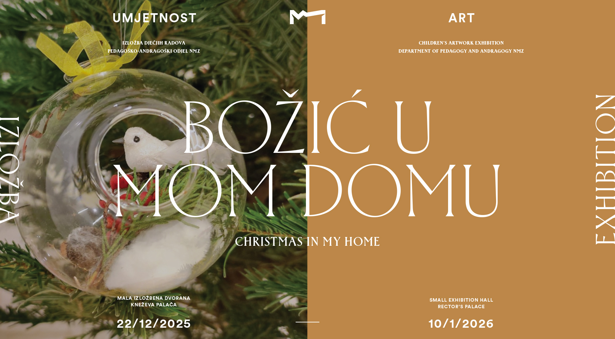 U ponedjeljak, 22. prosinca 2025. godine u 10:00 sati u Maloj izložbenoj dvorani Kneževe palače održat će se otvorenje izložbe dječjih radova pod nazivom „Božić u mom domu”.