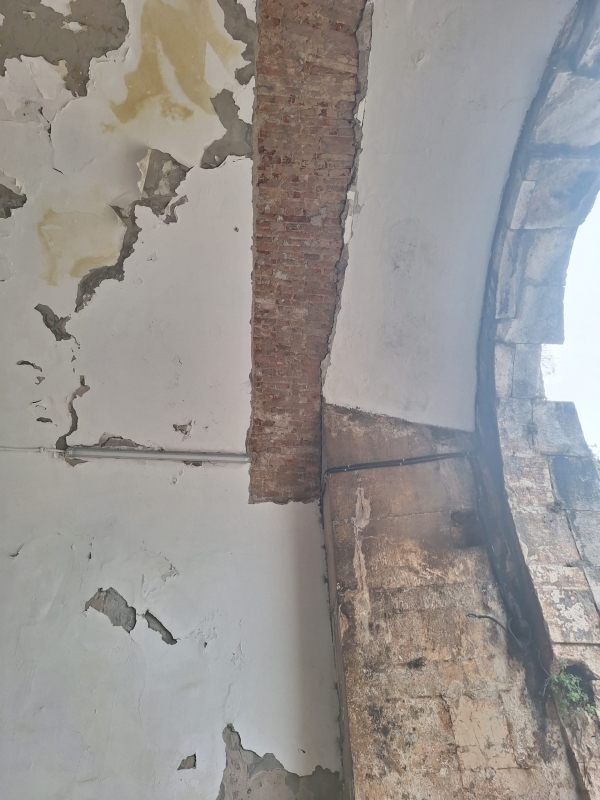U cilju utvrđivanja prisutnosti vlage i štetnih soli u konstrukciji provode se sljedeća istraživanja: otvaranje sondi u žbuci do zidane strukture svoda od pune opeke na trima mjestima, mjerenje vlage u konstrukciji na pet mjesta te endoskopski pregled. Endoskopski pregled provodi se bušenjem sondi svrdlom promjera 10 mm, pregledom unutrašnjosti svoda endoskopom na najmanje sedam mjesta te uzimanjem jednoga dubinskog uzorka iz stijenke svoda radi analize prisutnosti štetnih soli.
