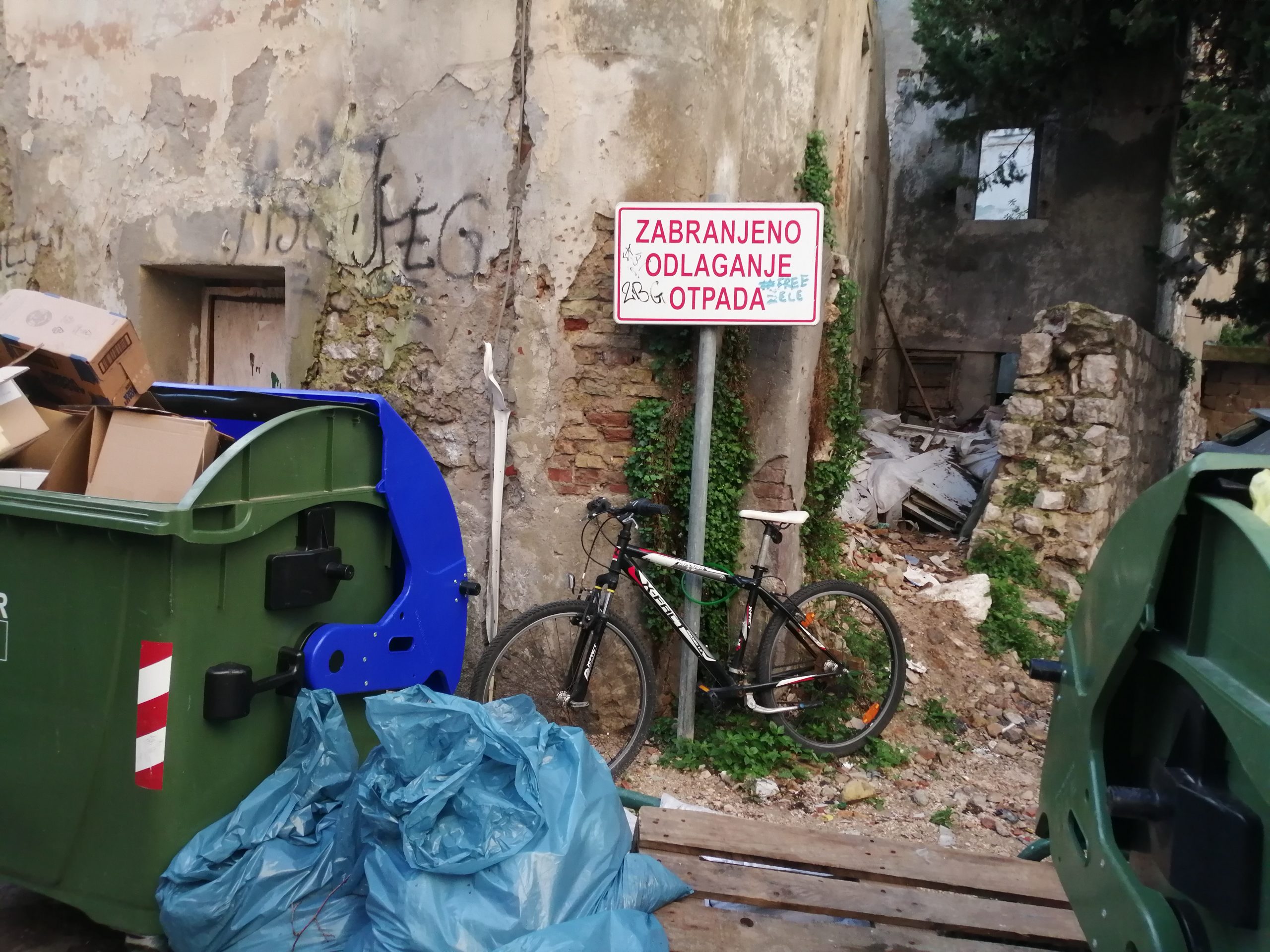 Unatoč znaku “Zabranjeno odlaganje otpada”, prostor iza zgrade Županijskog suda postao je pravi gradski deponij.