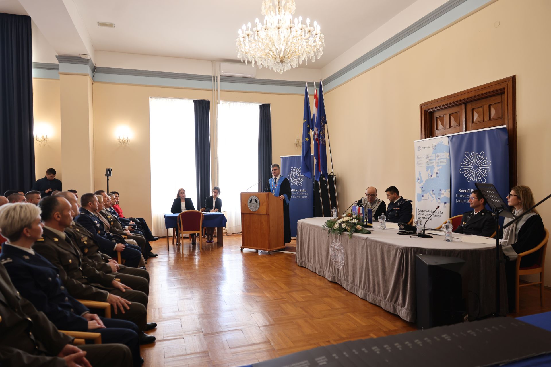 Na Sveučilištu u Zadru danas je održana svečana promocija polaznika Programa za stjecanje kompetencija nastavnika – časnika Hrvatskoga vojnog učilišta „Dr. Franjo Tuđman“ i Hrvatskog ratnog zrakoplovstva, koji su ovaj program pohađali i uspješno završili u okviru Specijalizacije za vojne nastavnike letenja, realizirane u suradnji i organizaciji Središta za obuku Hrvatskog ratnog zrakoplovstva „Rudolf Perešin“ i Sveučilišta u Zadru putem Centra „Stjepan Matičević“.