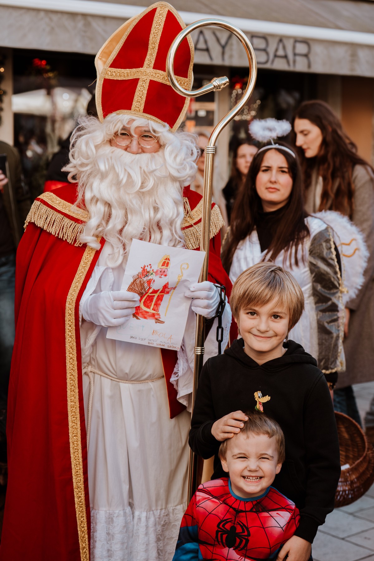 Od 10.30 do 12.30 sati Trg pet bunara, Narodni trg, Kalelarga i Forum postali su pozornica za povorku kostimiranih animatora koji su u pratnji sv. Nikole stvarali pravi mali ulični spektakl. Djeci su dijelili slatkiše, veselo mahali prolaznicima i neprestano širili božićni duh koji je, sudeći po reakcijama slučajnih prolaznika, zahvatio i starije jednako snažno kao i najmlađe na ulicama centra. Cijela šetnja, koja je završila povratkom na Trg pet bunara preko Rive, pretvorila je gradske kalete u mjesta na kojima se obična šetnja pretvorila u bajku nad bajkama, ali i predivan tradicijski doživljaj.