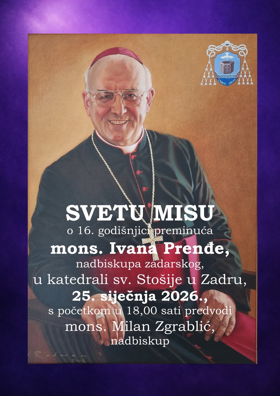U nedjelju 25. siječnja u 18 sati u katedrali sv. Stošije svetu misu povodom 16. godišnjice njegova preminuća predvodi zadarski nadbiskup Milan Zgrablić, donosi Nadbiskupija.