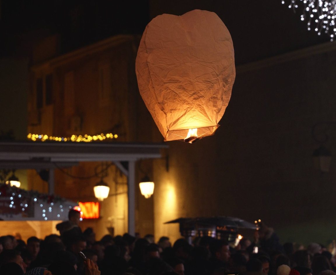 Večernji program otvorio je bend Notturno koji je rasplesao okupljene i pripremio ih za središnji doček. U 23 sata na pozornicu je stupila Lidija Bačić, čiji su hitovi i energičan nastup zagrijali publiku, a okupljeni su zajedno pjevali, plesali i uživali u veseloj atmosferi na trgu. U posljednjim sekundama stare godine posjetitelji su pustili lampione u zrak, simbolično ispraćajući staru godinu i zaželjevši svoje želje za nadolazeću godinu.