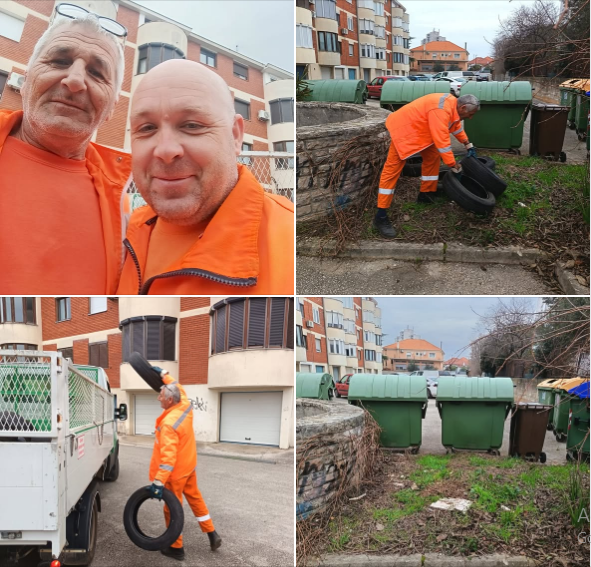 Naime, neki savjesni građanin dojavio im je o gomilanju automobilskih guma uz spremnike u Ulici Tomislava Ivčića, no njihova vrijedna ekipa odmah je izašla na teren i uklonila ovaj otpad: