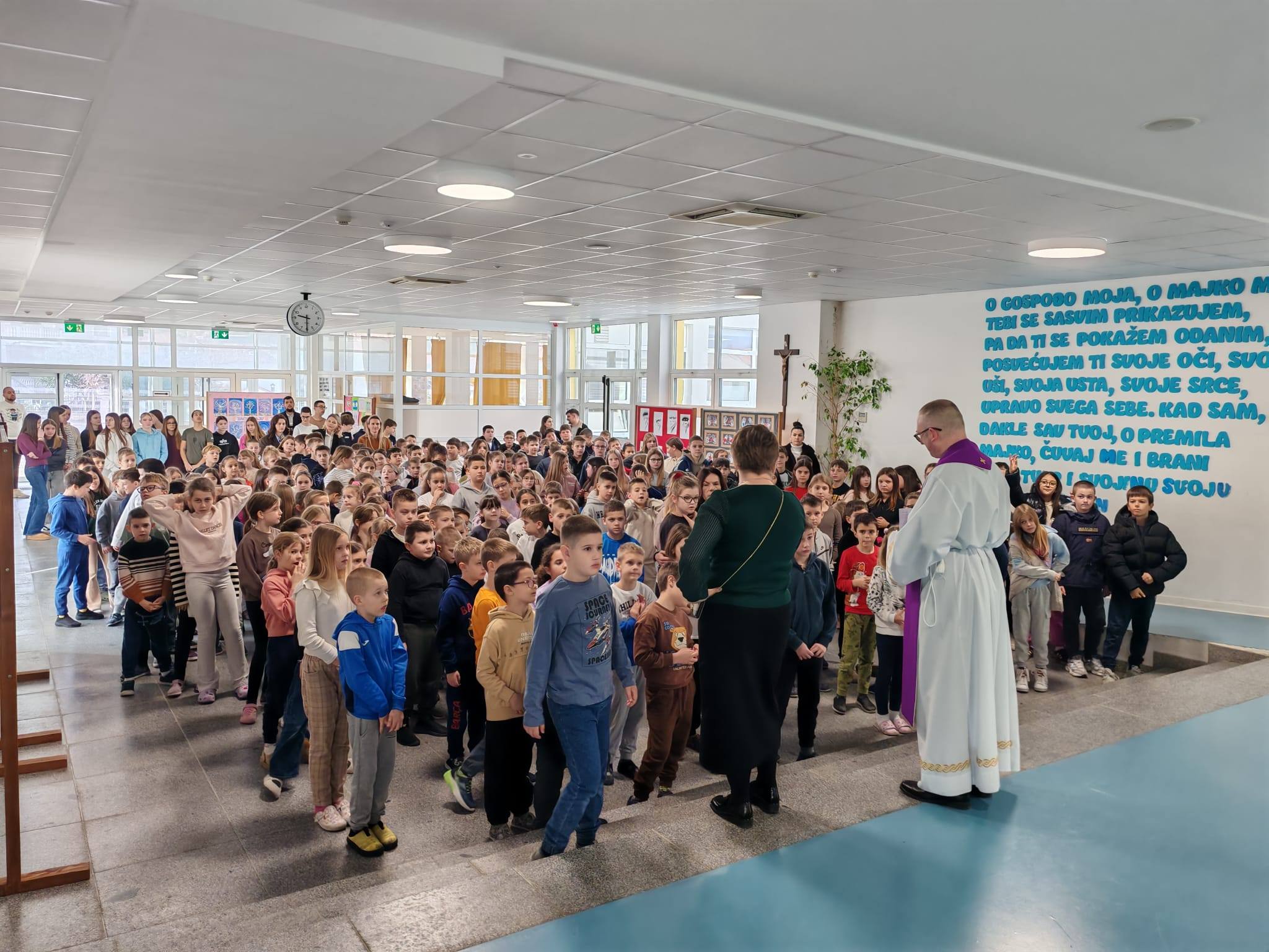Danas je Pepelnica, dan kojim započinje priprava za Uskrs, vrijeme posta, odricanja i molitve – vrijeme korizme. U školi je tim povodom njihov duhovnik, don Tomislav Dubinko, učenicima objasnio zašto se na ovaj dan vjernici posipaju pepelom, nakon čega je svaki učenik pristupio obredu pepeljenja.