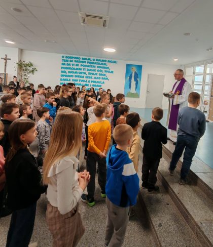Učenici Katoličke osnovne škole „Ivo Mašina“ u Zadru pristupili su obredu pepeljenja na Čistu srijedu u dvorani svoje škole na Bokanjcu.