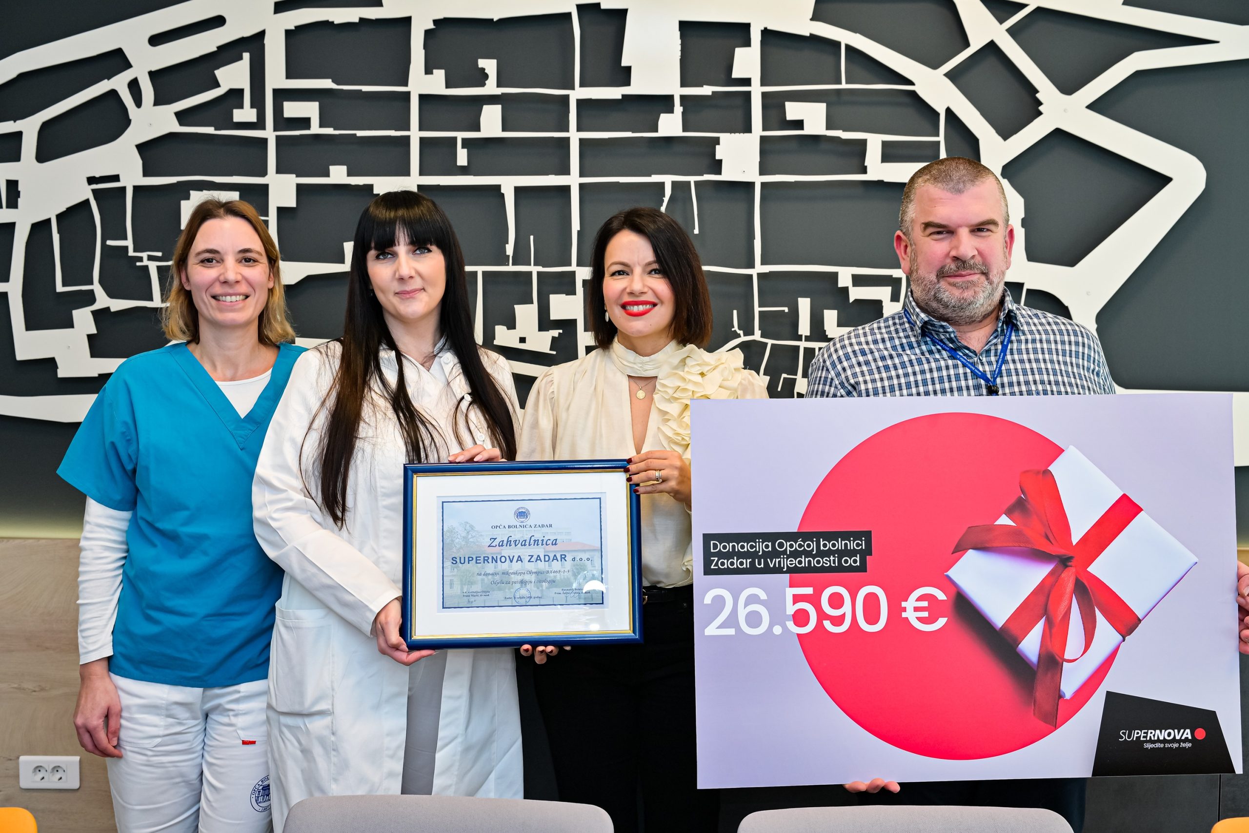 Trgovački centar Supernova Zadar donirao je Općoj bolnici Zadar suvremeni mikroskop Olympus BX46F-1-3 vrijedan 26.590 eura, koji je instaliran na Odjelu za patologiju i citologiju, jednoj od ključnih dijagnostičkih službi bolničkog sustava.