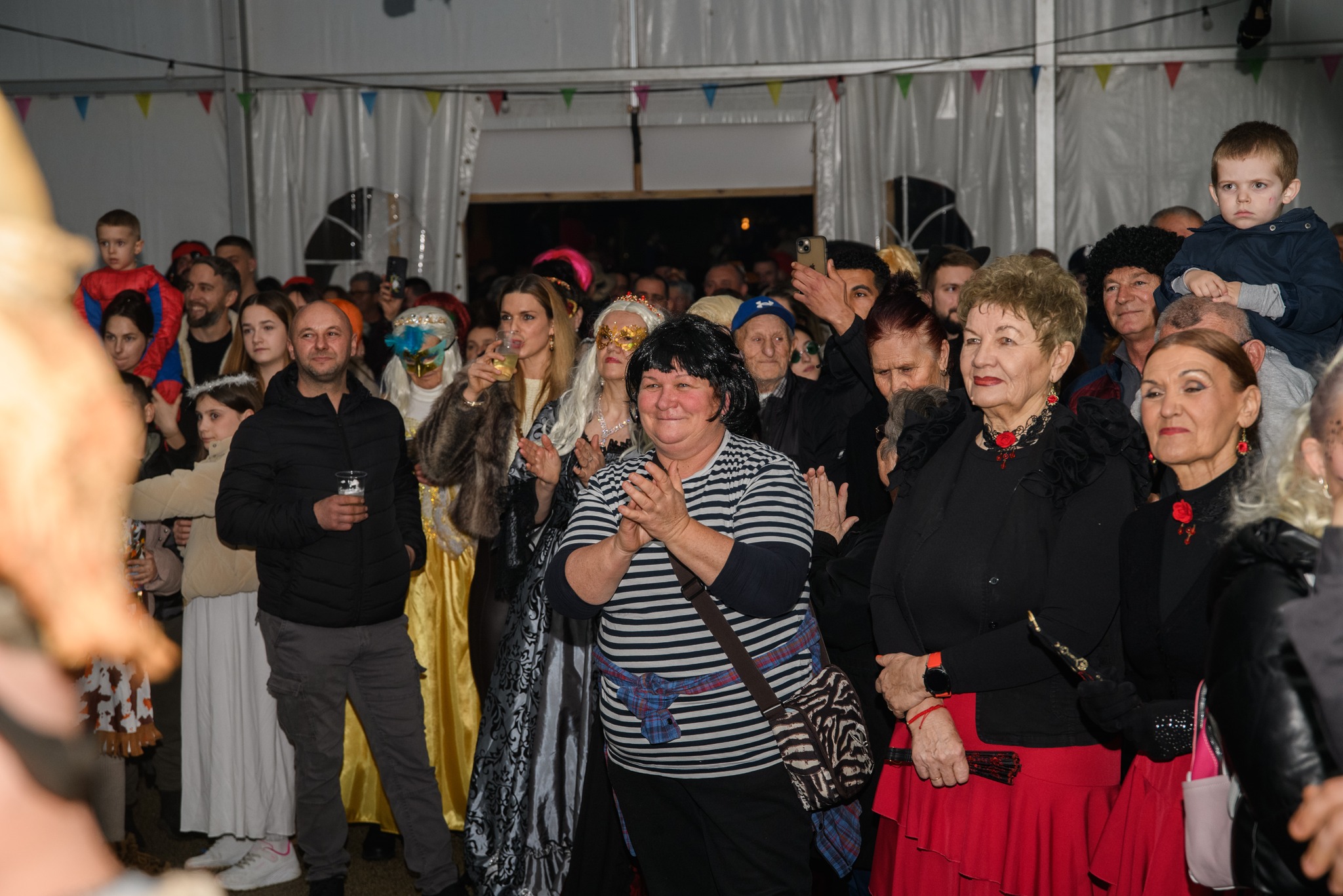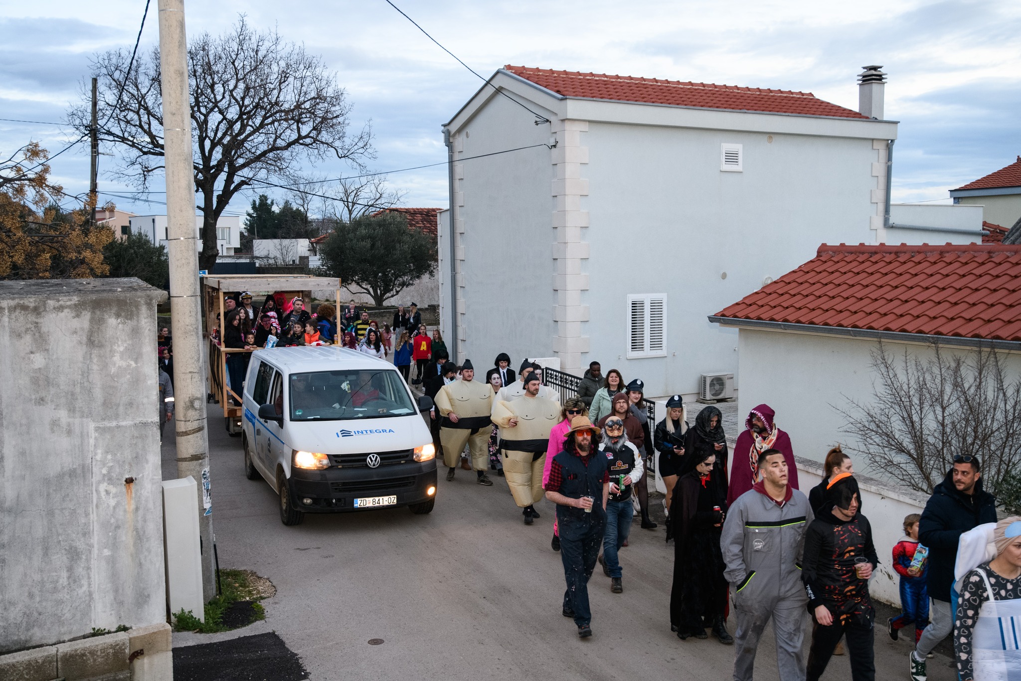 U veseloj karnevalskoj povorci, uz domaćine, sudjelovale su i maškarane grupe iz Zadra, Vira, Nina, Trogira i drugih mjesta, a program su dodatno obogatile zadarske i virske mažoretkinje, unoseći poseban ritam, razigranost i vizualni šarm. Posebnu pažnju privukao je izbor najboljih maski – prvo mjesto za grupnu masku osvojila je skupina s Vira, predvođena Goranom Vickovićem, drugo mjesto pripalo je ninskoj udruzi Aenona s domišljatom maskom lisica, dok je treće mjesto otišlo u Trogir, u ruke vesele, mladolike i raspjevane ekipe.