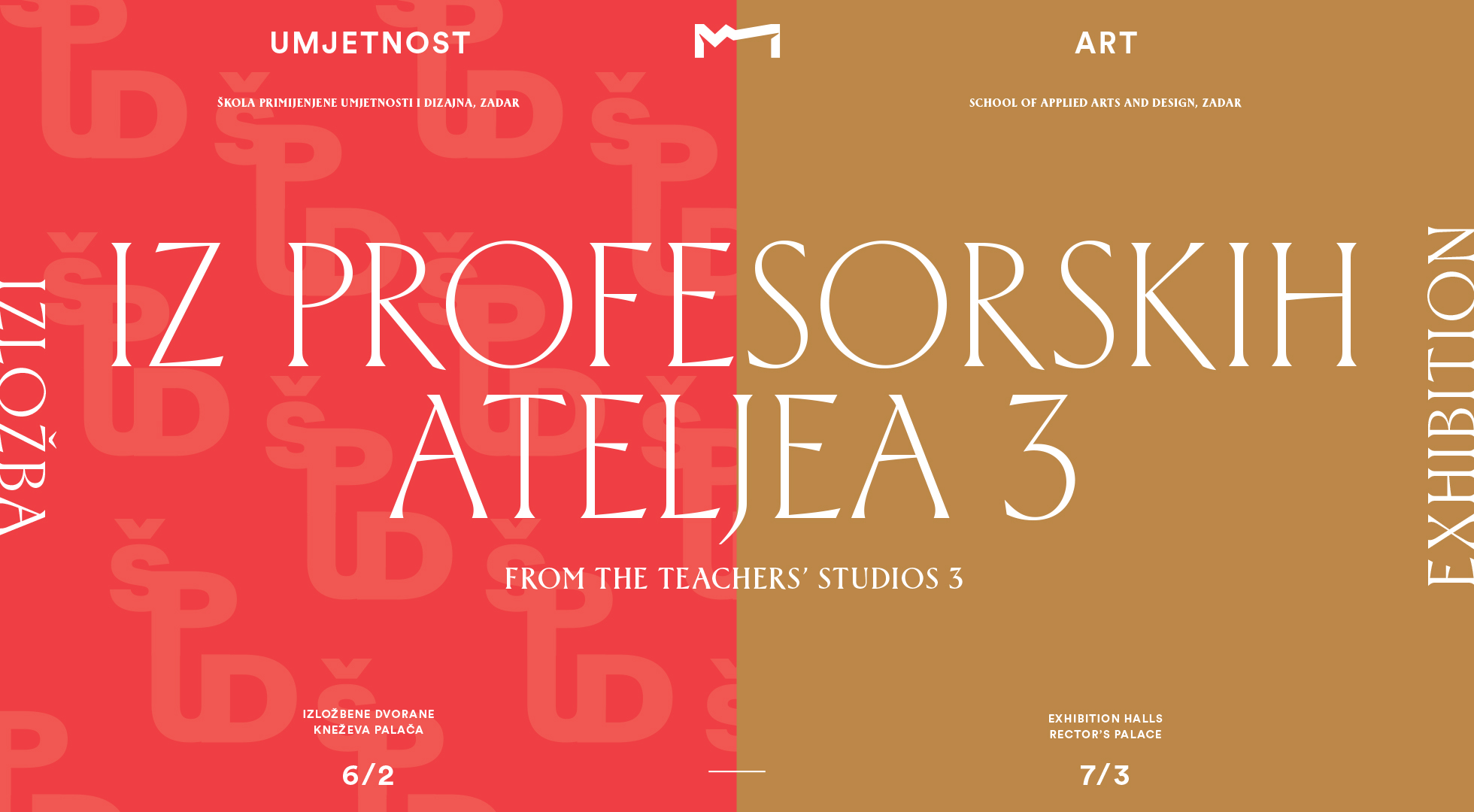 Škola primijenjene umjetnosti i dizajna u Zadru (ŠPUD) najavljuje izložbu profesora pod naslovom „Iz profesorskih ateljea 3“.  Ovom izložbom se nastavlja bijenalni ciklus započet 2021. godine, s ciljem predstavljanja umjetničkog rada nastavnika stručnih predmeta izvan nastavnog procesa. Otvaranje izložbe najavljeno je za petak 6. veljaće, 19.30 sati u Kneževoj palači.