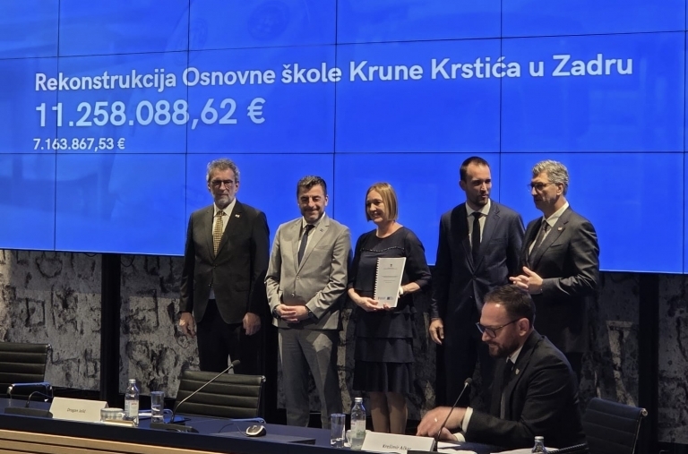 U Zagrebu je danas uručeno ukupno 55 ugovora za kontinuirano ulaganje u škole na području cijele Hrvatske, javlja Grad Zadar.