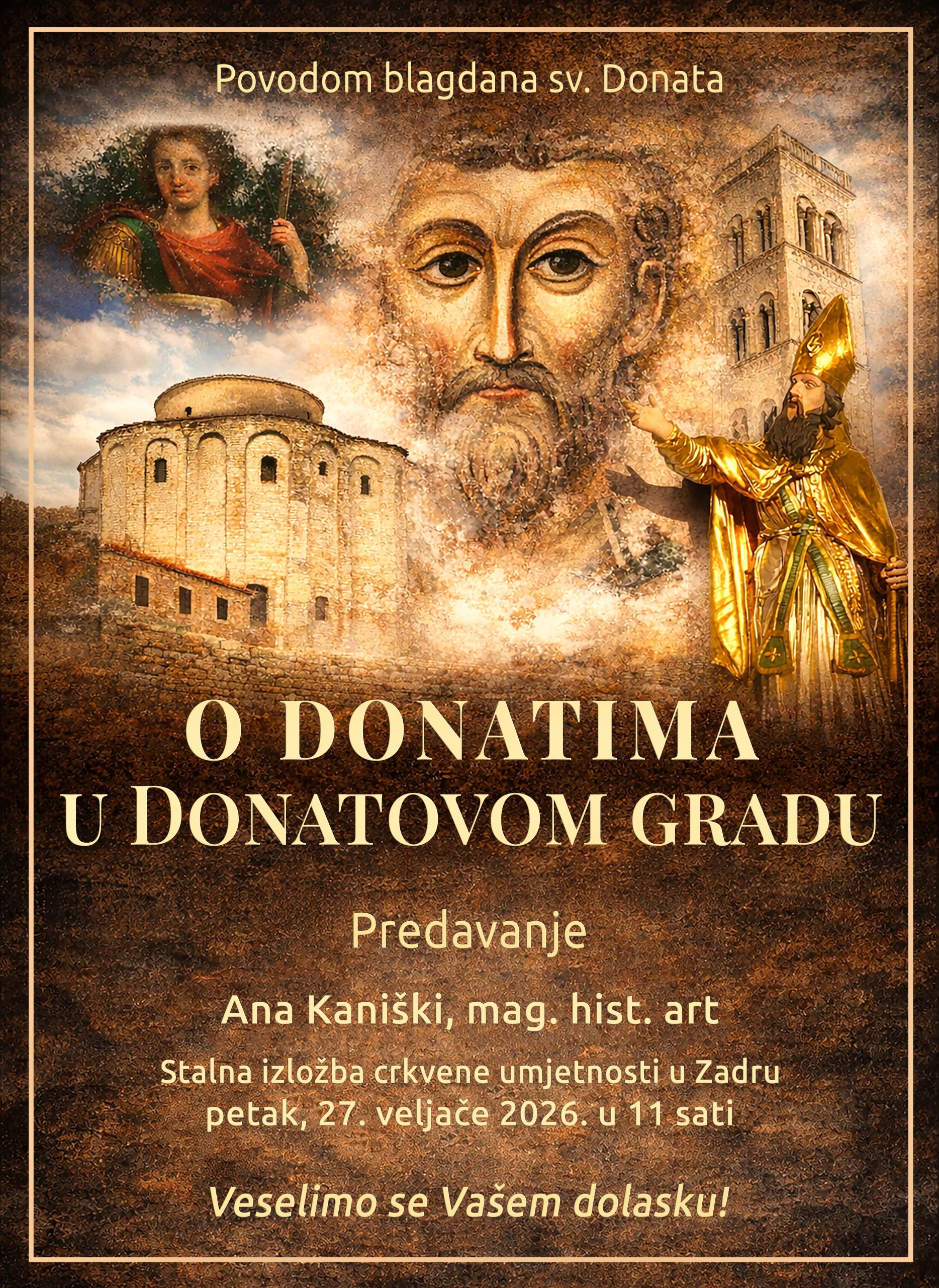 Povodom obilježavanja blagdana sv. Donata, u Stalnoj izložbi crkvene umjetnosti (SICU) u Zadru u petak, 27. veljače, s početkom u 11 sati, predavanje ‘O Donatima u Donatovom gradu’ će održati Ana Kaniški, mag. hist. art.