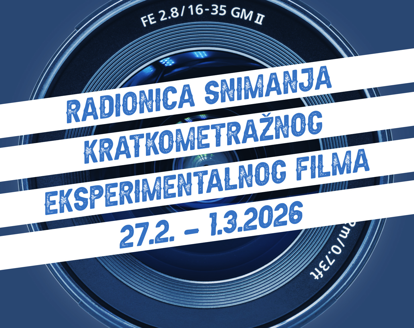 Radionica snimanja kratkometražnog eksperimentalnog filma trajat će 3 dana a sveukupno 16 sati. Polaznici će se upoznati s načinom kako efektivno organizirati snimanje, te biranje lokacija, i naposljetku kako snimiti kratki eksperimentalni film. Prethodno znanje nije potrebno. Snimljene materijale će montirati voditelj radionica pa će se gotov kratkometražni film premijerno javno prikazati. Prvi dan uključuje: Upoznavanje s poviješću eksperimentalnog filma, metoda izrade eksperimentalnog filma, te kreiranje ideje za eksperimentalni film. Drugi dan uključuje: Pripreme za snimanje filma, upoznavanje s kamerom i opremom, kreiranje scenoslijeda, pribava materijala za snimanje eksperimentalnog filma. Treći dan uključuje: Snimanje kratkometražnog eksperimentalnog filma. Radionica za maksimalno 5 polaznika. Voditelj radionice je filmski redatelj Erik Lončar.