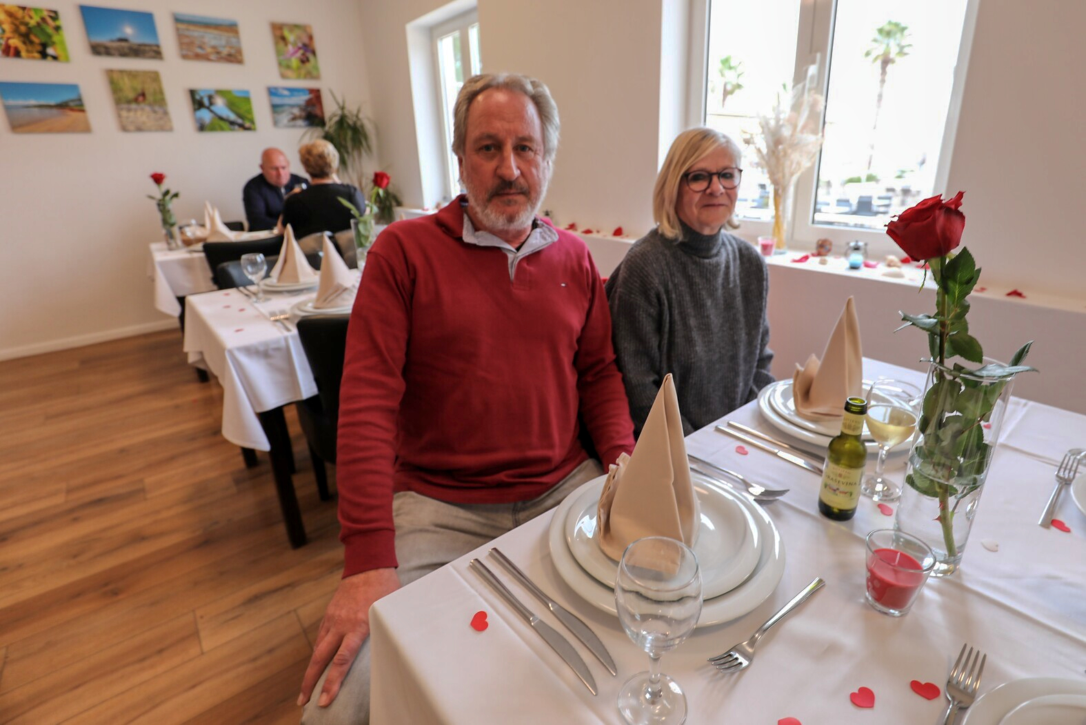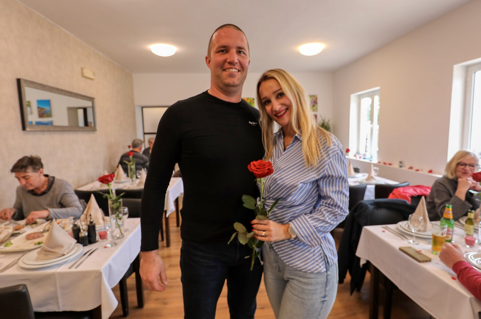 Ukrasni stolnjaci, malena bijela i crvena srca na stolovima, besprijekoran beštek, crvena mirisna svijeća i velika crvena ruža dočekali su danas goste restorana Kotarina na prigodnom ručku koji je Vir turizam pripremio za Valentinovo. Tridesetak parova častilo se od 15 sati ljubavnim ručkom za koji je većina gostiju imala rezervaciju, ali pronašlo se mjesta i za one koji su svratili vidjeti ima li mjesta.