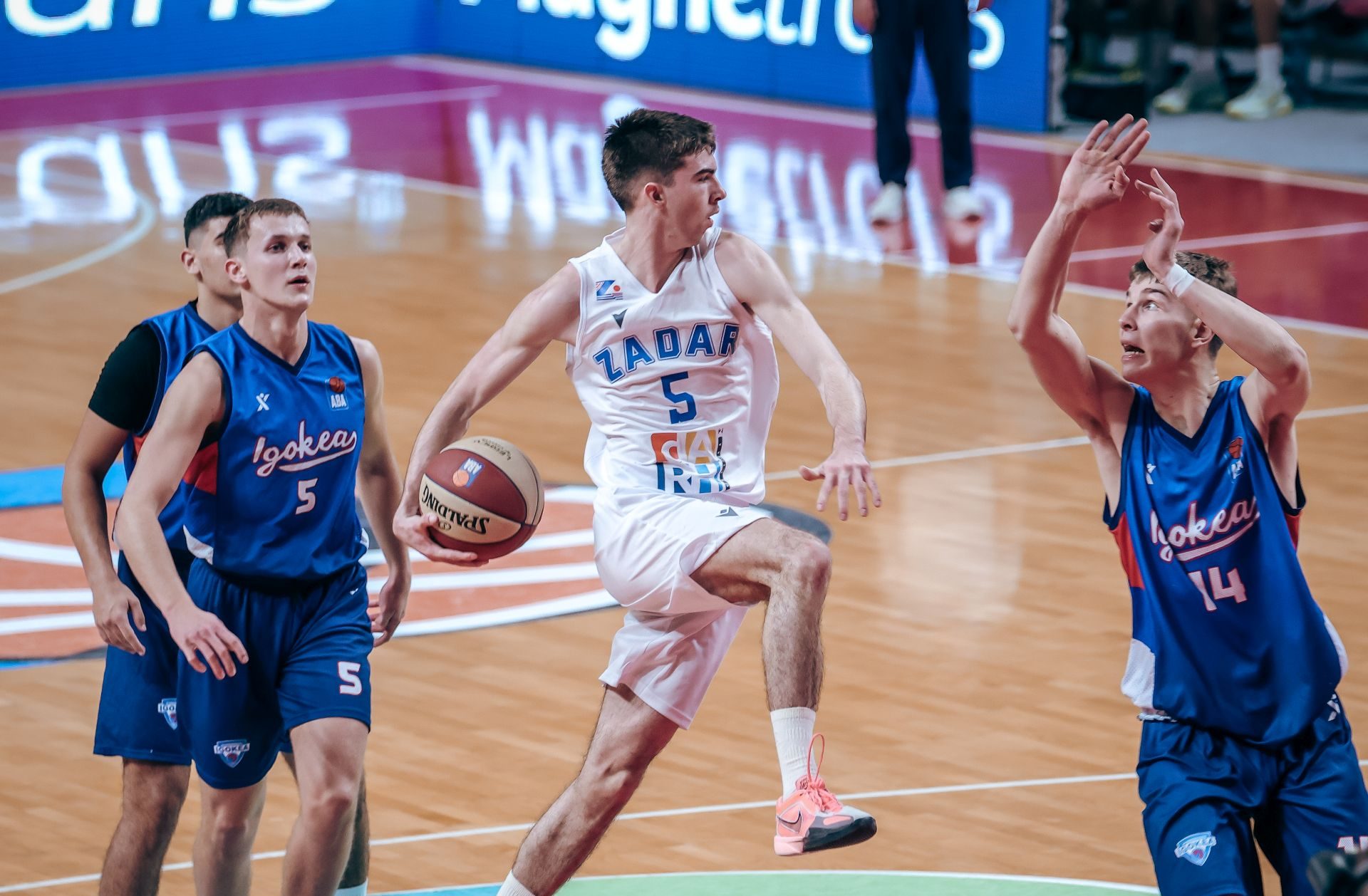 Otvaranje utakmice pripalo je gostima iz Zadra koji su imali kontrolu skoku, a i napadački su bili izrazito razigrani što im je već na polovici prve četvrtine donijelo dvoznamenkastu prednost (8:19), koja je rasla do +12 (14:26). Uvođenjem mladog Petra Gruje, a potom i Frane Milolože domaća je momčad zaigrala puno bolje, a kada se otvorilo i Borni Dramaliji u napadačkom dijelu, za ekipu Jazina nije bilo spasa. Već do odlaska na predah prednost domaćih je iznosila +8 (52:44).