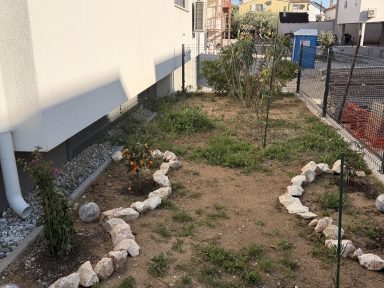 U dvorištu zgrade posađeno je stablo Cercis siliquastrum (judino drvo) i 16 sadnica grmolikog bilja (Pittosporum tobira – pitospora, Photinia fraseri “Red Robin” – fotinija i Phormium tenax – novozelandski lan), a postavit će se i odgovarajući sustav navodnjavanja.