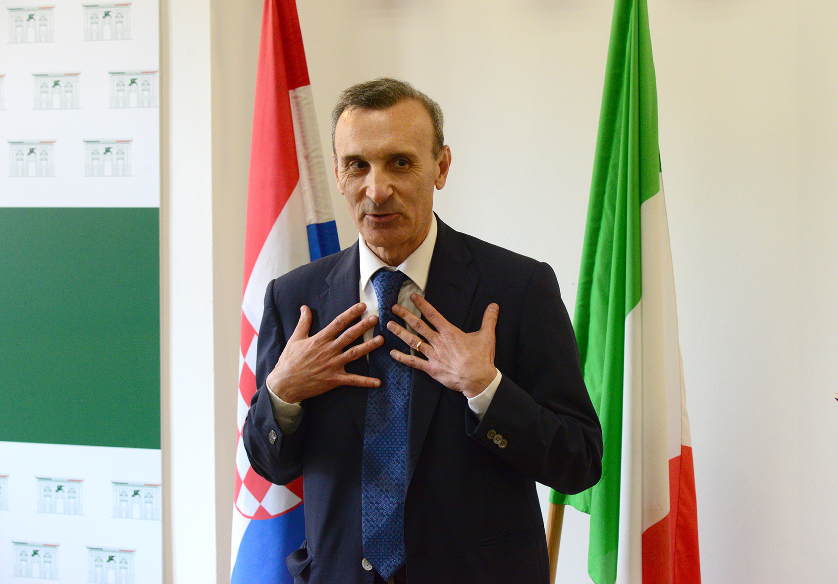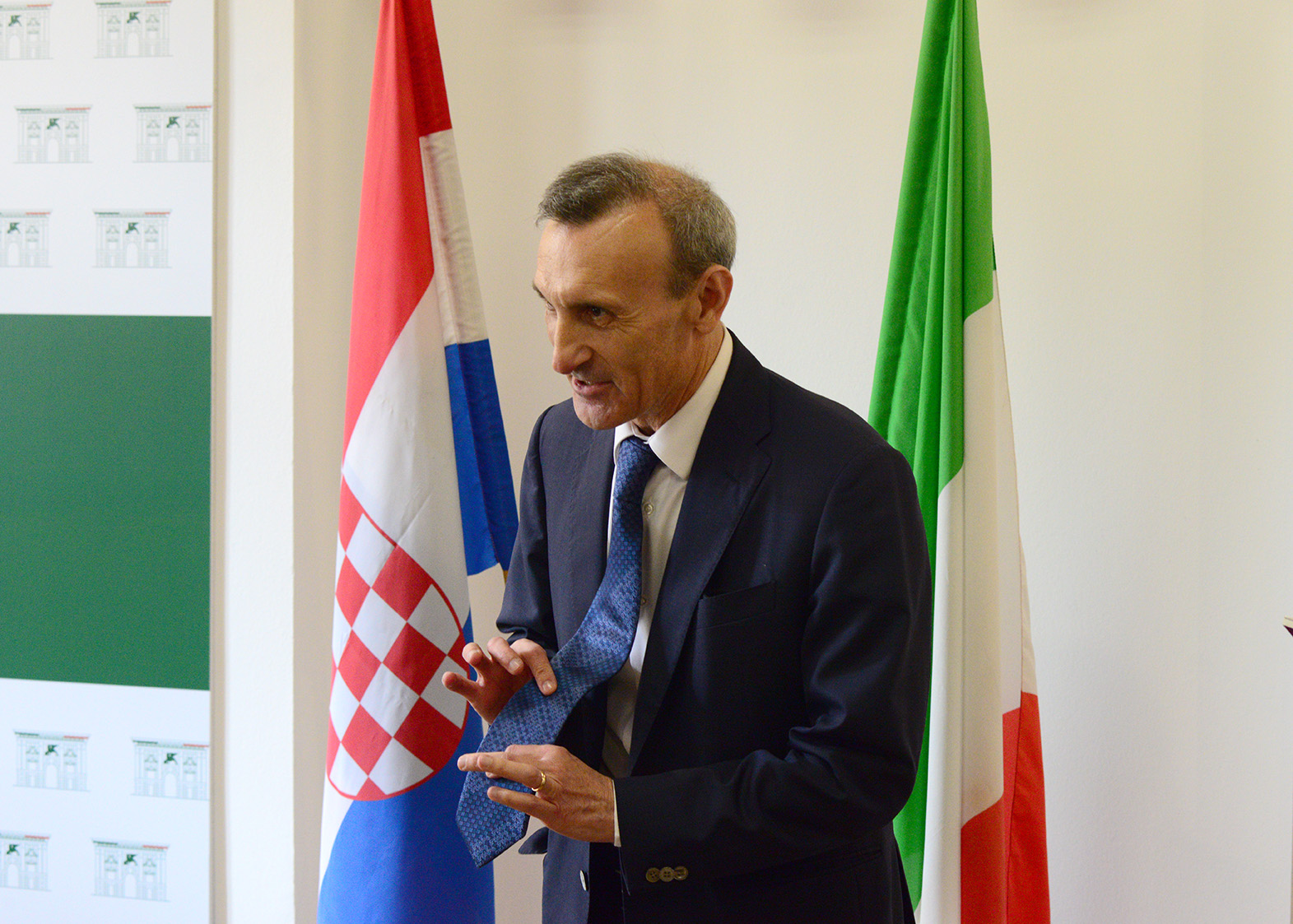 Talijanski veleposlanik, Njegova Ekscelencija Paolo Trichilo, za ovu je prigodu, u znak poštovanja i prijateljstva prema Hrvatskoj kao zemlji primateljici, stavio kravatu s uzorkom glagoljice.