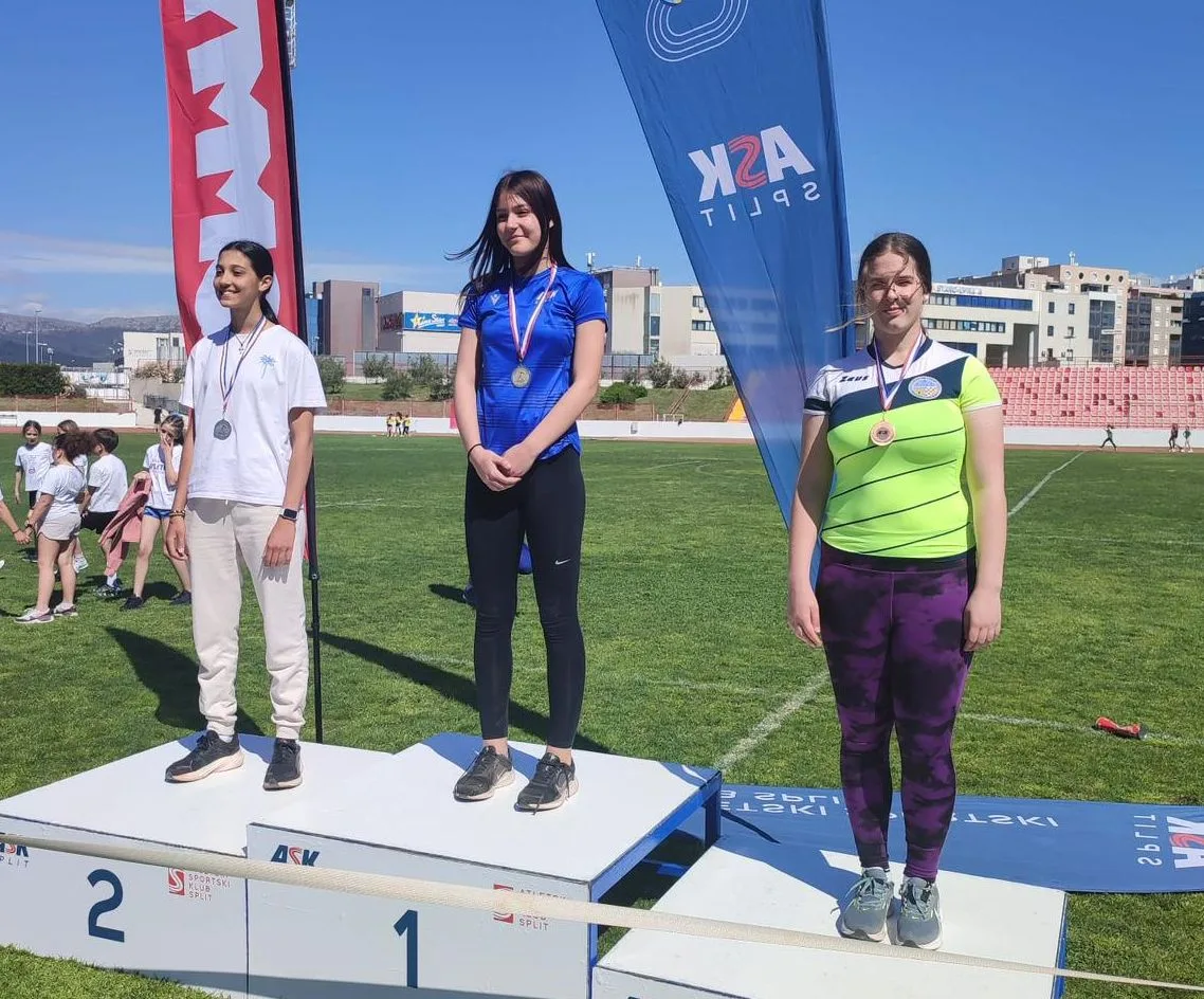 U Splitu su mladi atletičari briljirali na Uskrsnom mitingu Memorijal Joško Kapetanović, osvojivši tri medalje uz tri osobna rekorda. Dora Pešić bila je najbolja u utrci na 60 metara (2018. godište) s vremenom 10.77. Mlađa kadetkinja Tonina Šarić (2014.) osvojila je srebro u bacanju kugle (2 kg) s hicem 10.25 metara, dok je kadetkinja Patricia Pešić (2011.) osvojila broncu u bacanju koplja (500 g) s rezultatom 25.70 metara.
